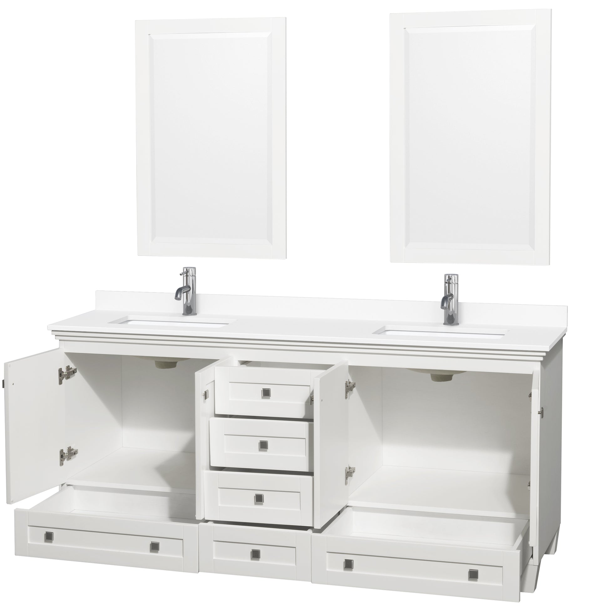 Acclaim 72 Inch Double Bathroom Vanity in White, White Cultured Marble Countertop, Undermount Square Sinks, 24 Inch Mirrors