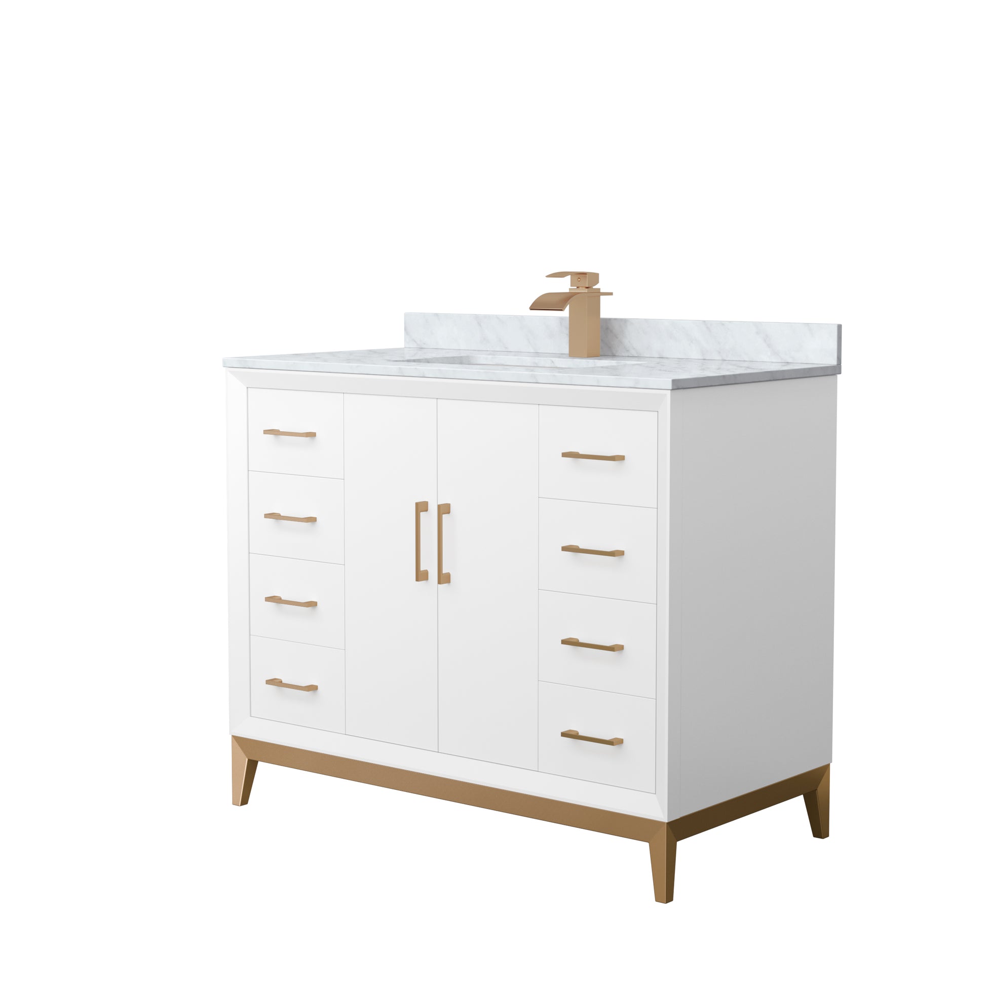 Amici 42 Inch Single Bathroom Vanity in White, White Carrara Marble Countertop, Undermount Square Sink, Satin Bronze Trim