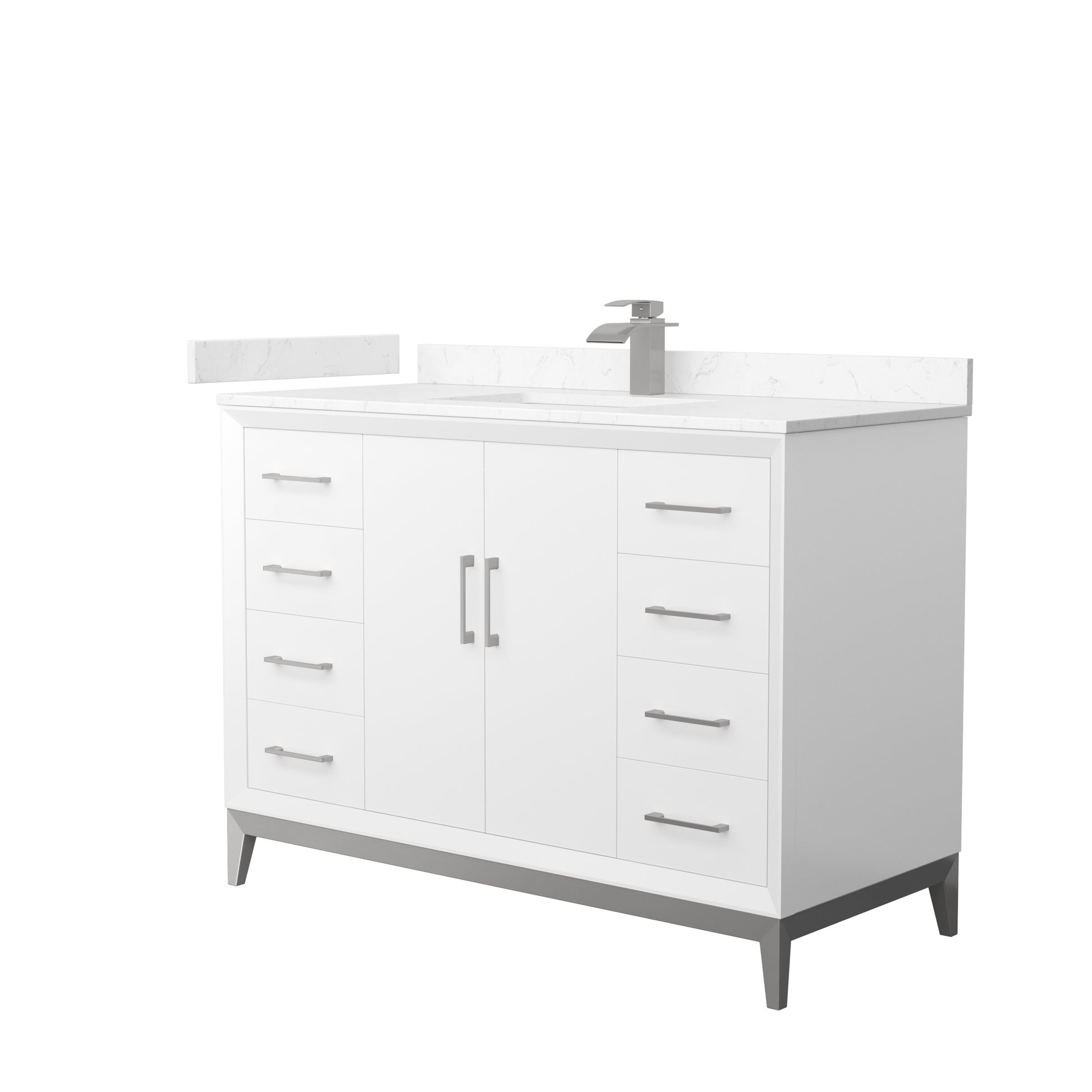 Amici 48 Inch Single Bathroom Vanity in White, Carrara Cultured Marble Countertop, Undermount Square Sink, Brushed Nickel Trim