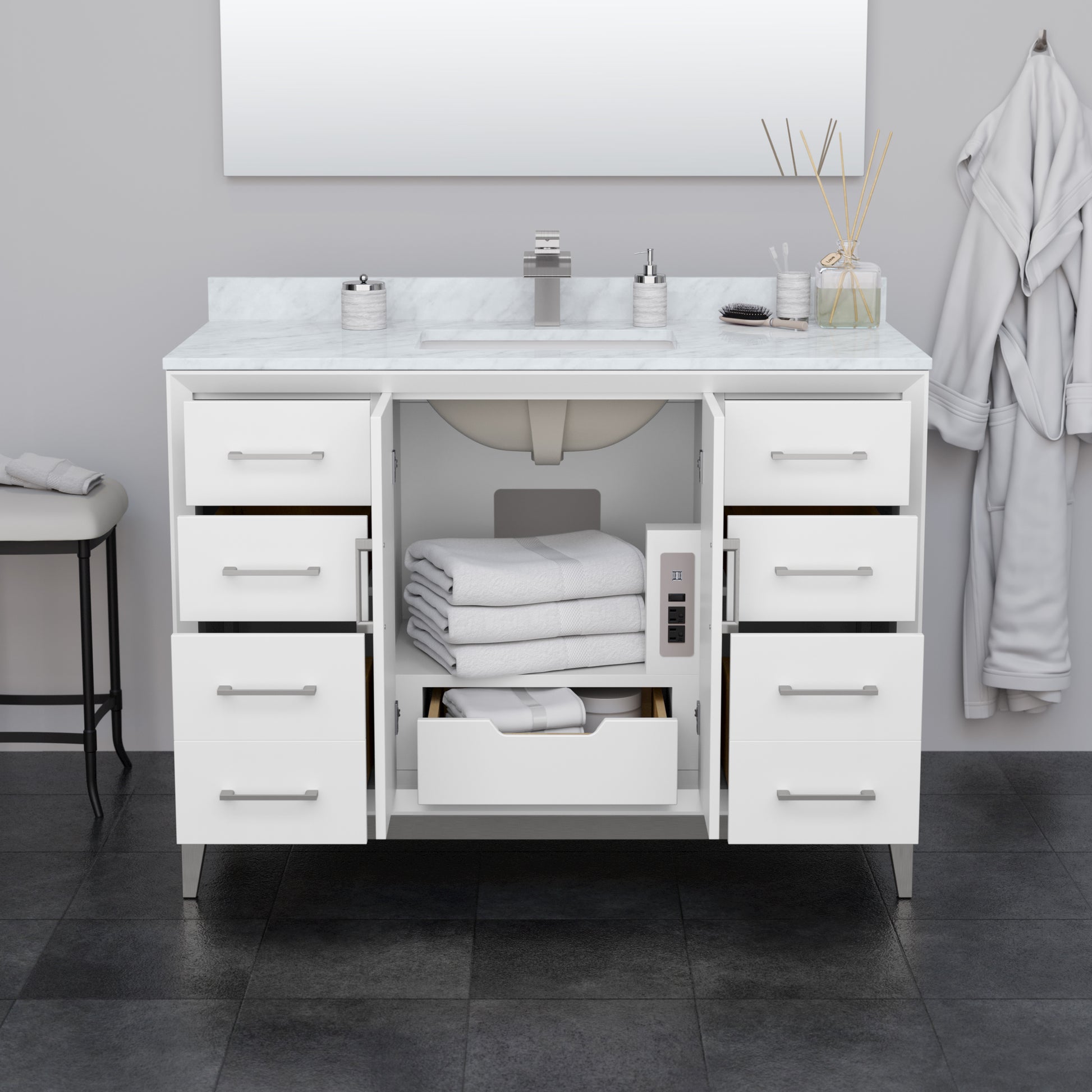 Amici 48 Inch Single Bathroom Vanity in White, No Countertop, No Sink, Matte Black Trim