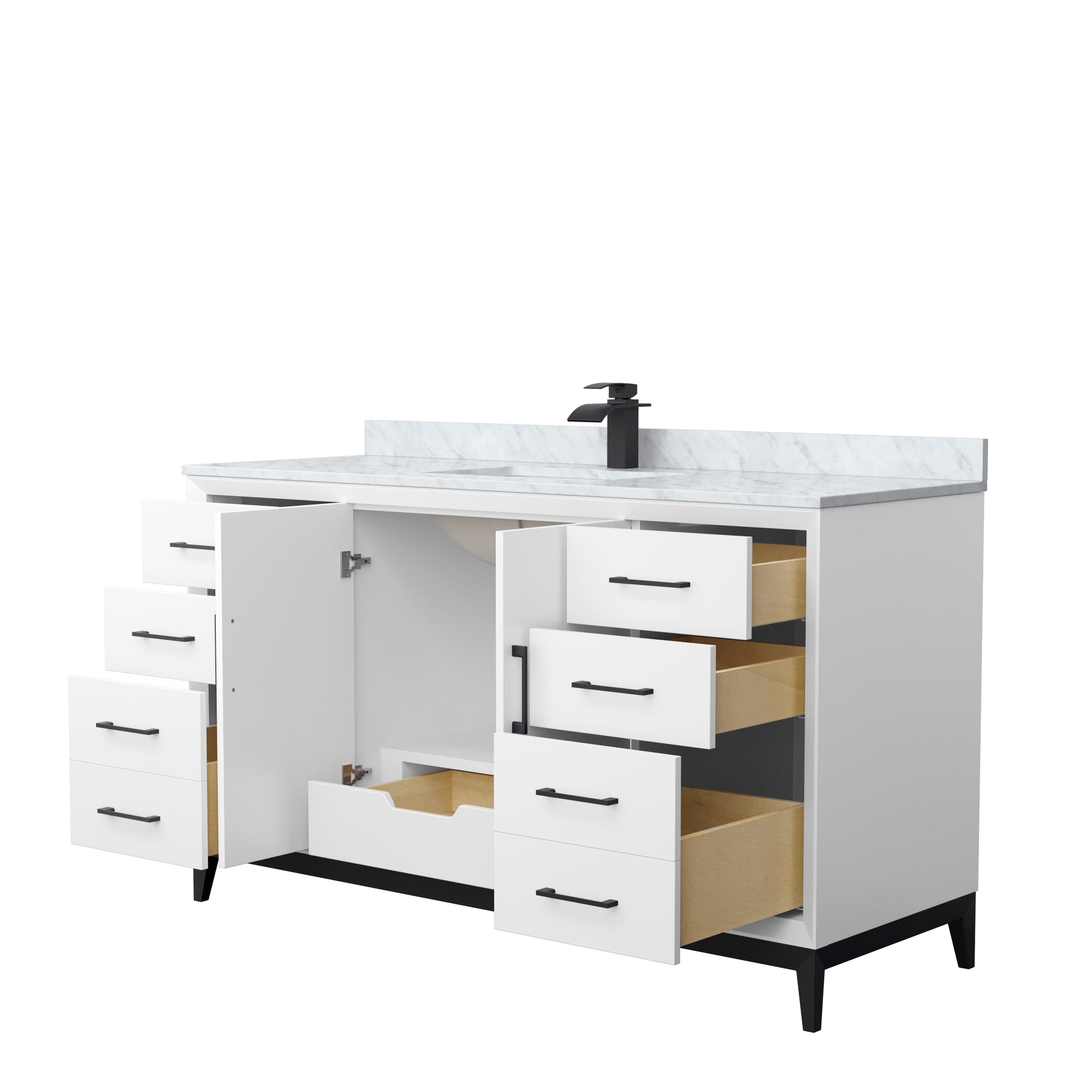 Amici 60 Inch Single Bathroom Vanity in White, White Carrara Marble Countertop, Undermount Square Sink, Matte Black Trim