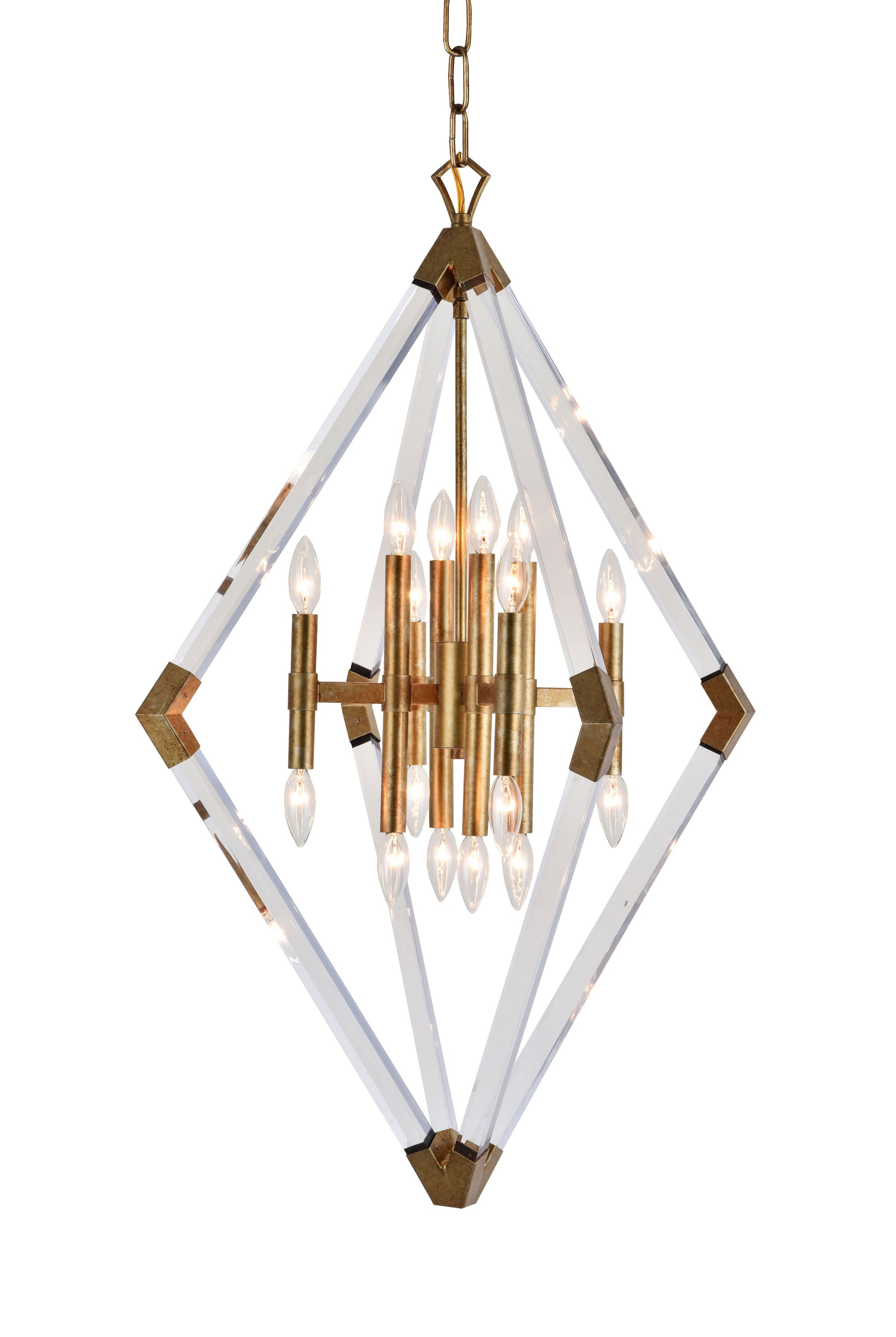 This exquisite chandelier has an antique gold metal frame. It comes with clear acrylic arms in diamond shaped. The adjustable chain link makes this chandelier suitable for most ceiling heights.