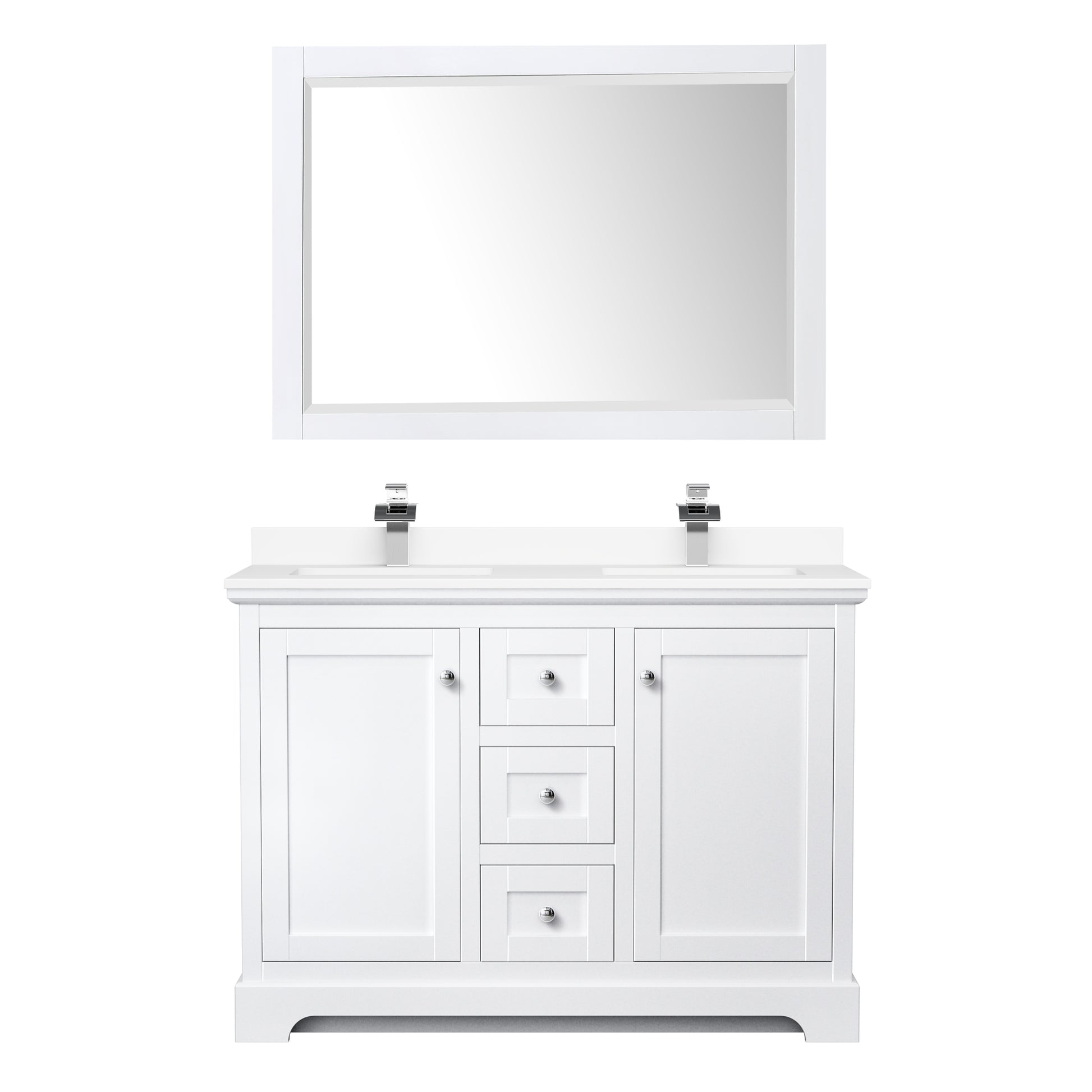Avery 48 Inch Double Bathroom Vanity in White, White Cultured Marble Countertop, Undermount Square Sinks, 46 Inch Mirror