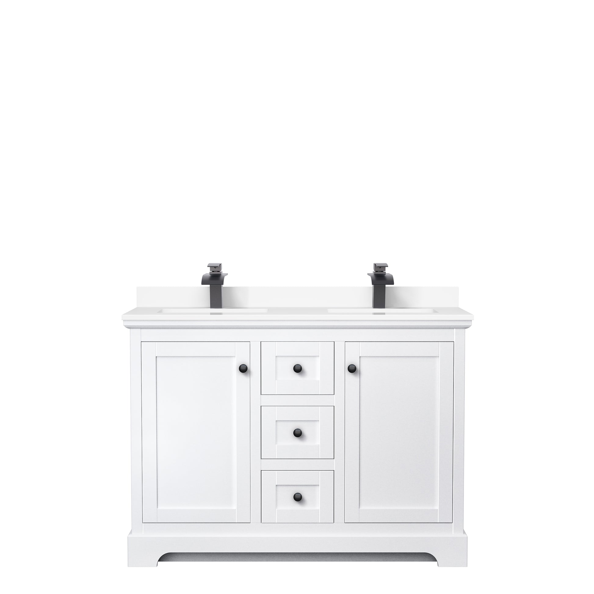 Avery 48 Inch Double Bathroom Vanity in White, White Cultured Marble Countertop, Undermount Square Sinks, Matte Black Trim