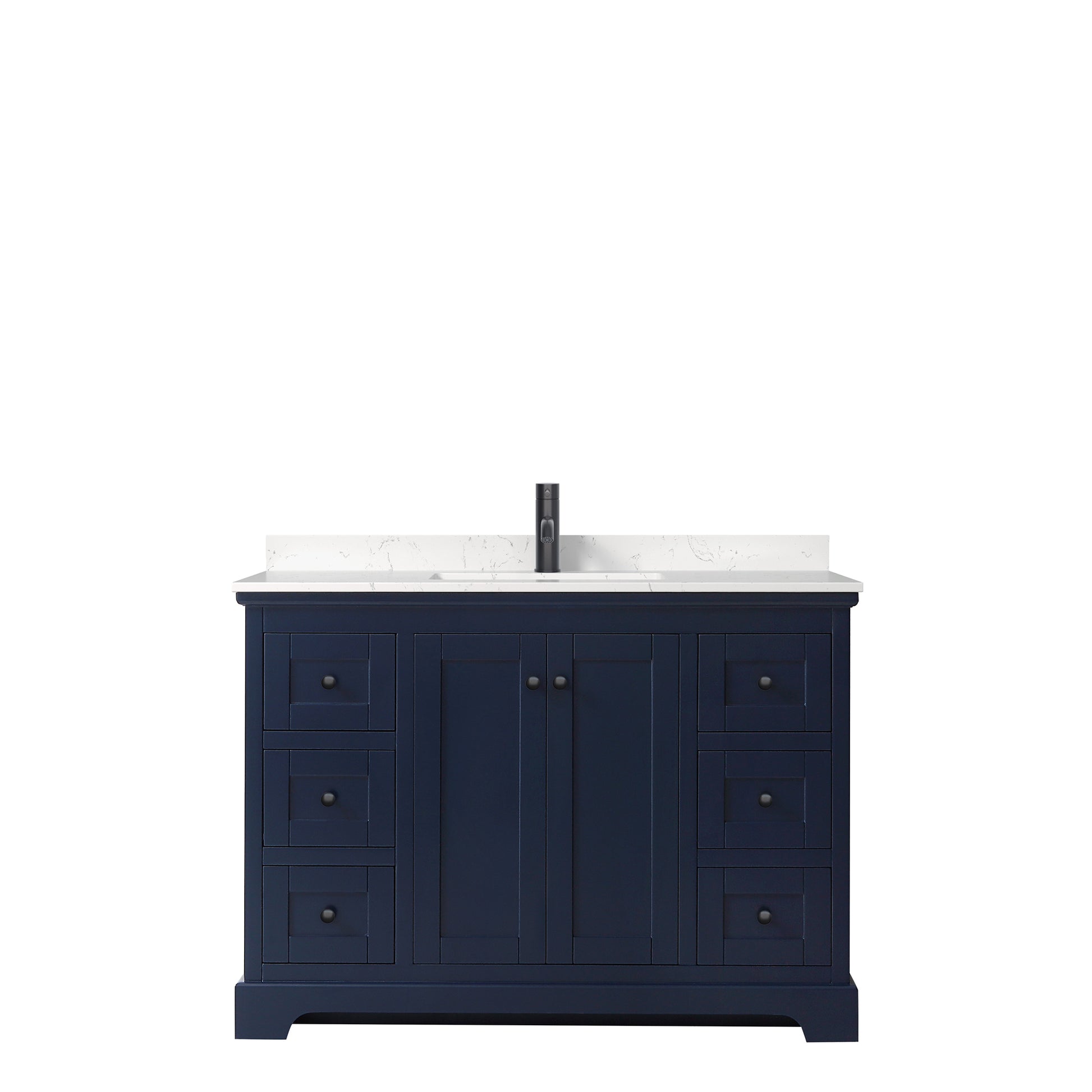 Avery 48 Inch Single Bathroom Vanity in Dark Blue, Carrara Cultured Marble Countertop, Undermount Square Sink, Matte Black Trim
