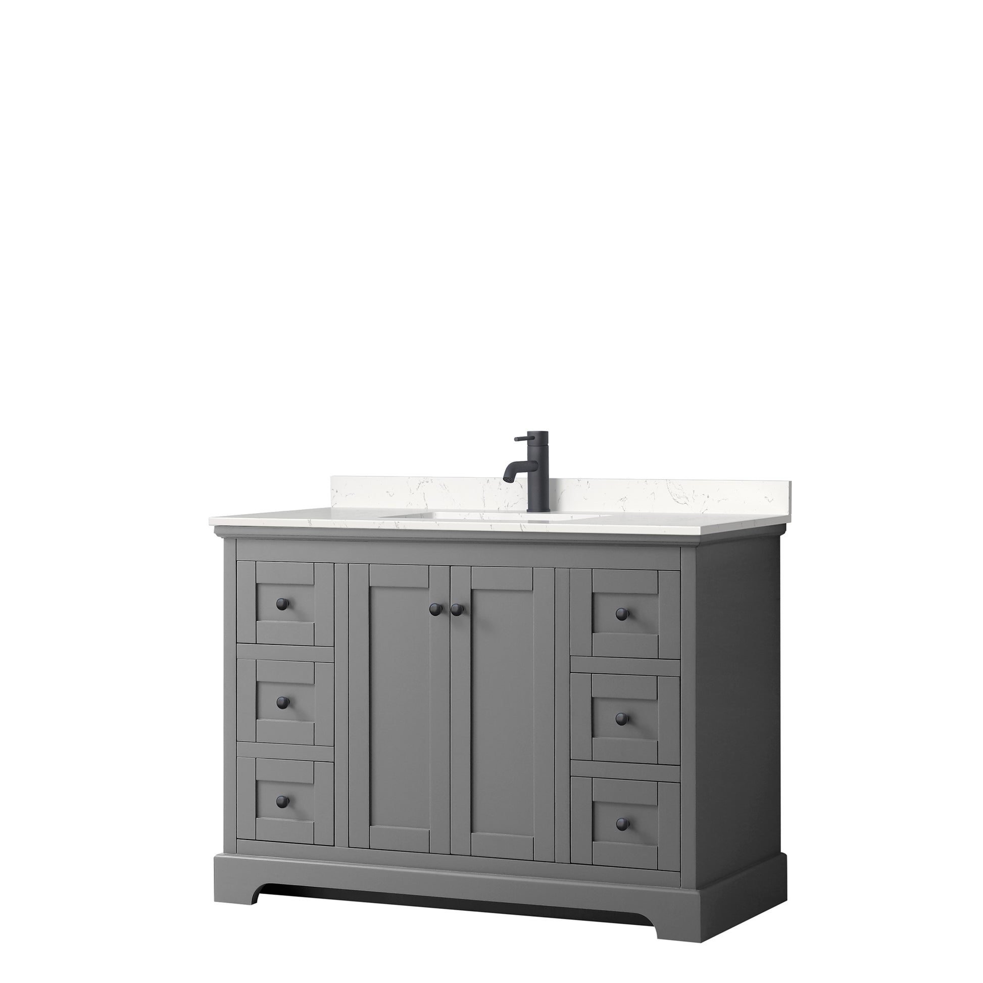 Avery 48 Inch Single Bathroom Vanity in Dark Gray, Carrara Cultured Marble Countertop, Undermount Square Sink, Matte Black Trim