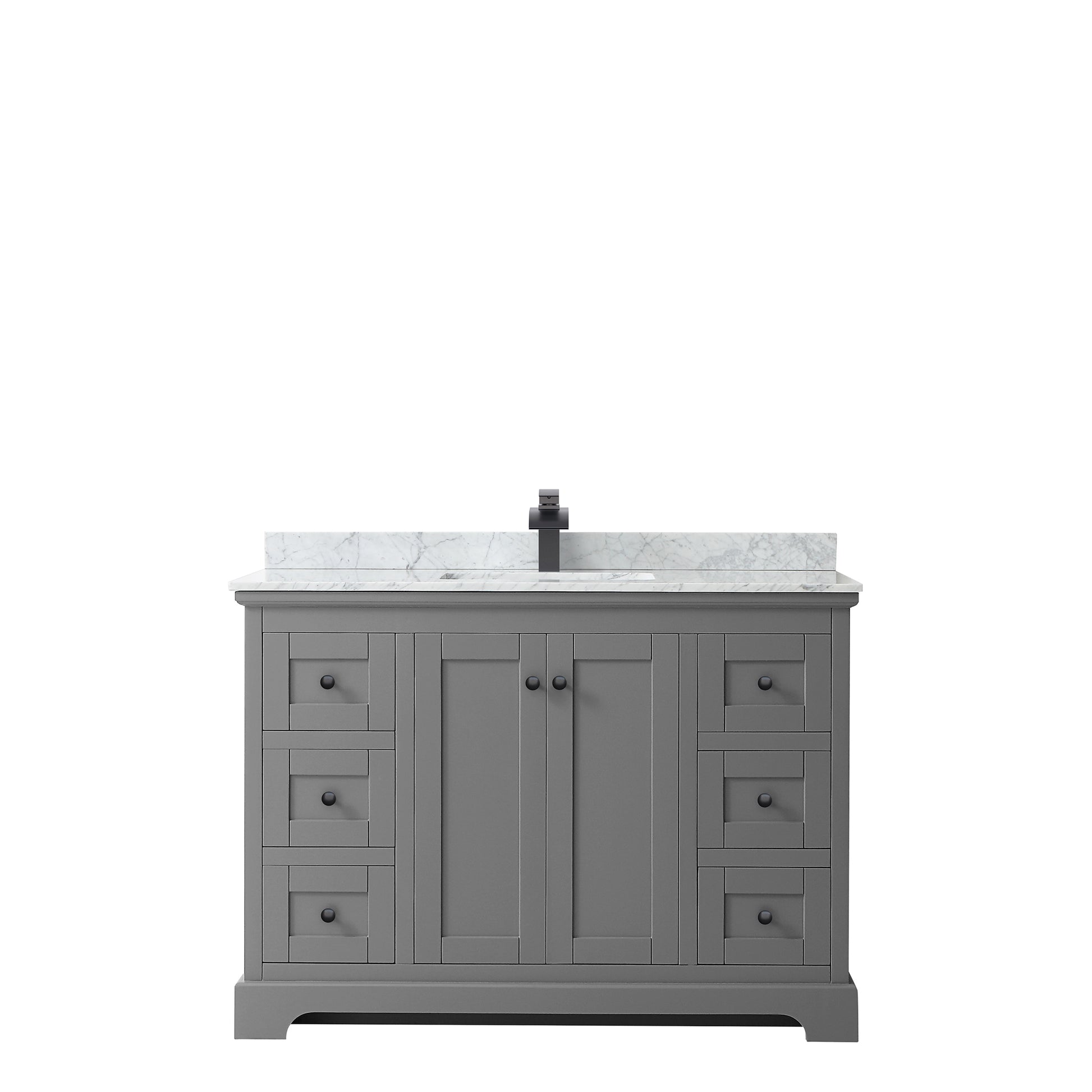 Avery 48 Inch Single Bathroom Vanity in Dark Gray, White Carrara Marble Countertop, Undermount Square Sink, Matte Black Trim