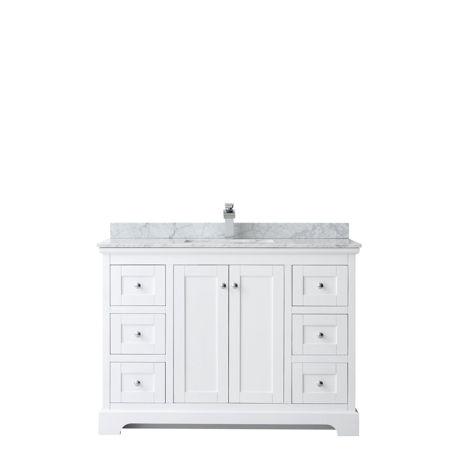 Avery 48 Inch Single Bathroom Vanity in White, White Carrara Marble Countertop, Undermount Square Sink, and No Mirror