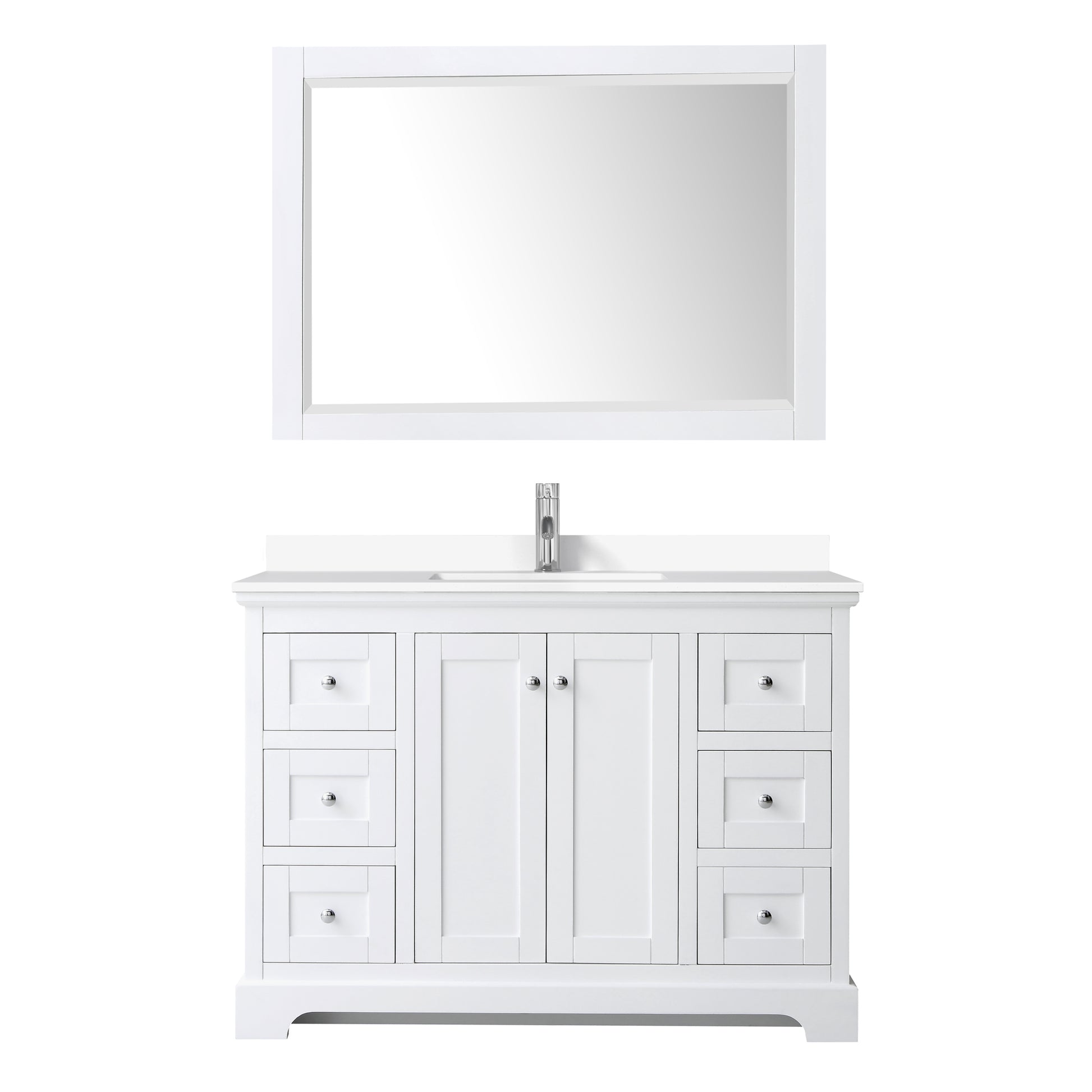 Avery 48 Inch Single Bathroom Vanity in White, White Cultured Marble Countertop, Undermount Square Sink, 46 Inch Mirror