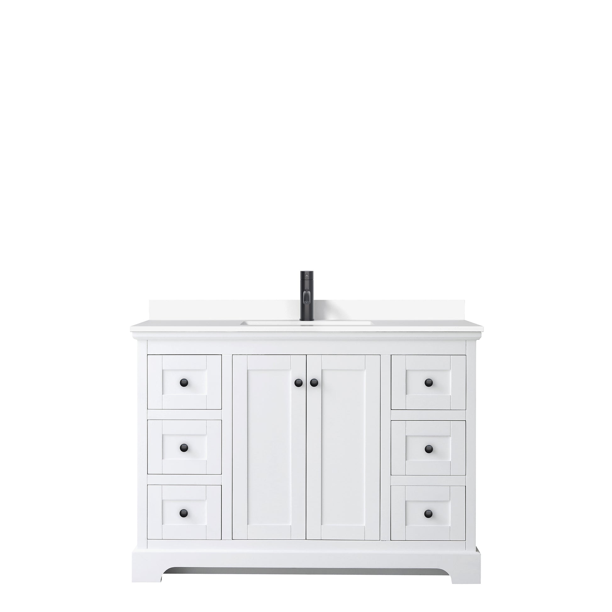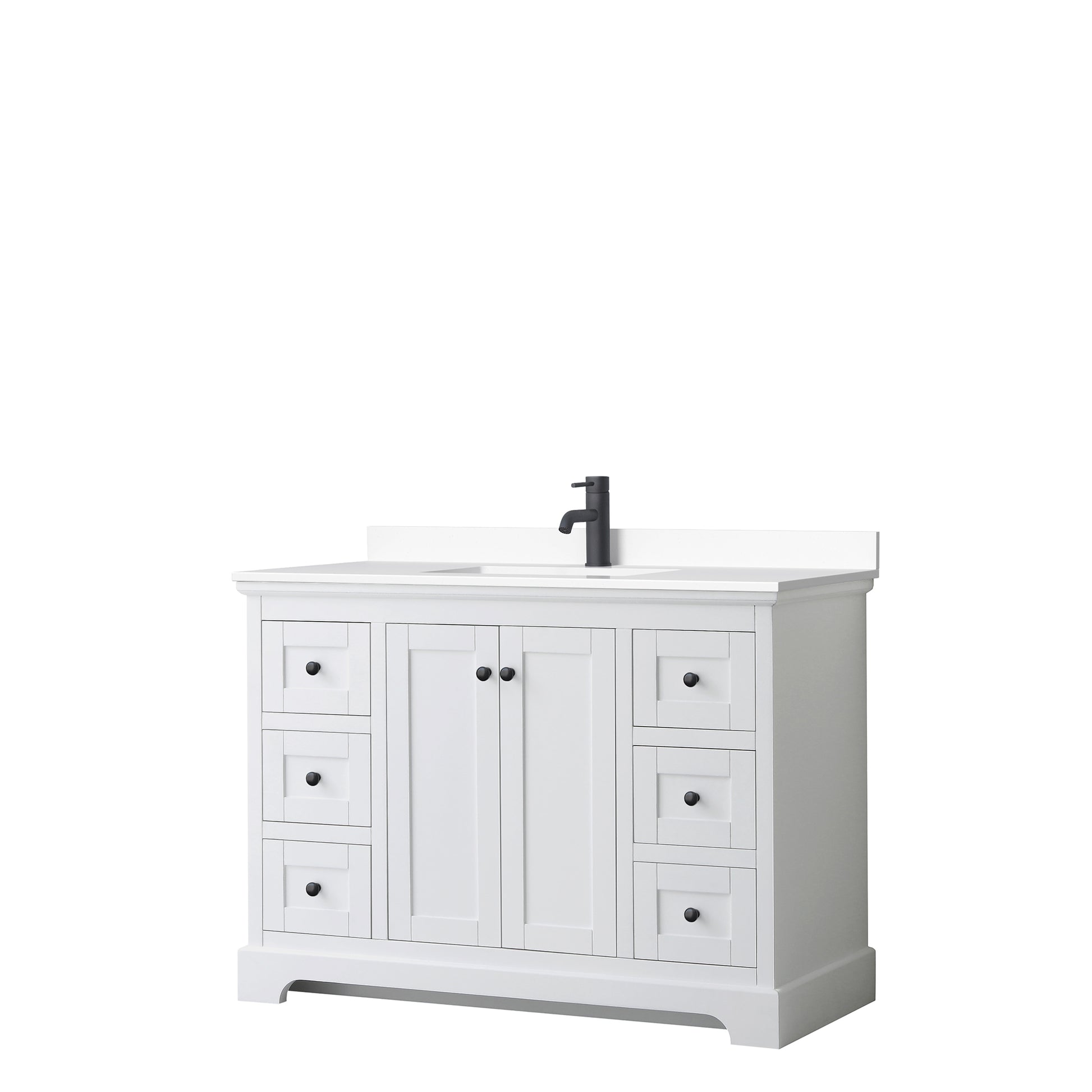 Avery 48 Inch Single Bathroom Vanity in White, White Cultured Marble Countertop, Undermount Square Sink, Matte Black Trim