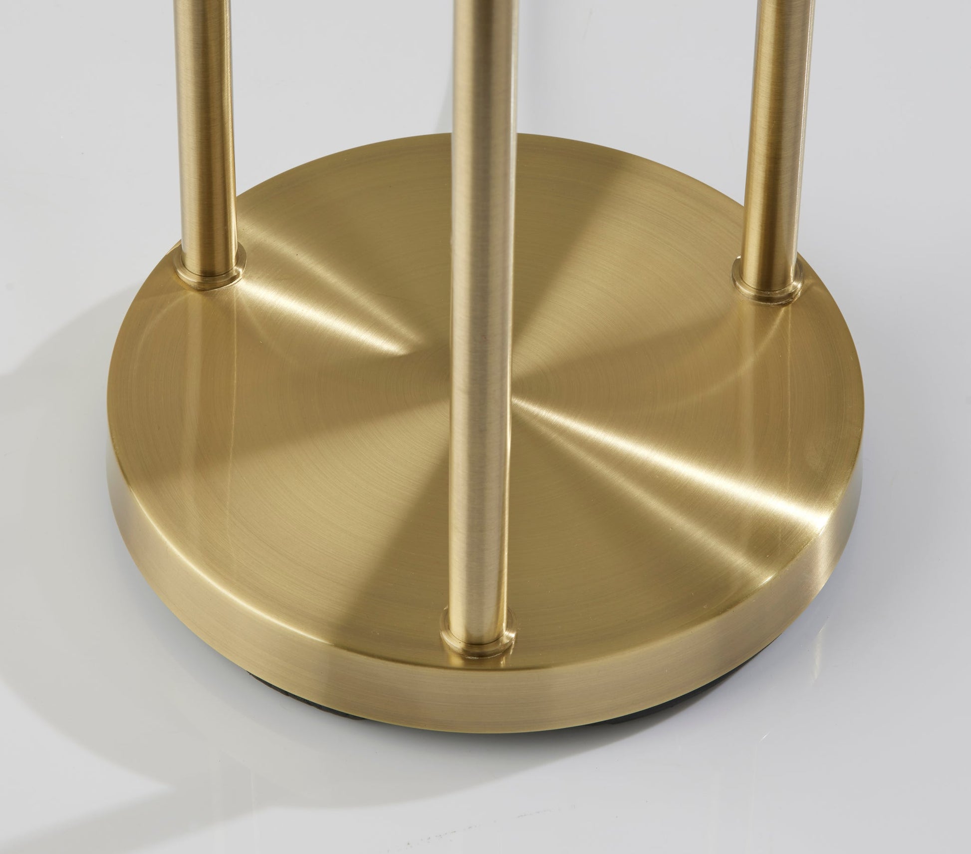 Bring a blend of style and function to your space with the 63 Bianca floor lamp. Featuring two 10 round frosted acrylic shelves, this lamp provides storage and display opportunities. The bottom shelf has a clearance of 34.75, making it a perfect place to display vases, picture frames, or other taller items, while the 20 clearance for the top shelf makes it ideal for placing drink glasses, phones, or other smaller pieces. The 10 metal base with an antique brass finish makes for a sturdy design, while the three poles with an antique brass finish arranged in a triangular pattern rise cleanly to three lighting heads of varying heights for an eye-catching design. The three 7 globe shades are made of white opal glass that complement the shelving and can be operated separately with pull chains, allowing you to control the amount of lighting. Each of the three globe shades ensconce 40W bulbs (not included), while the lamp also features a 5' clear cord. The Bianca floor lamp is also available with a brushed steel finish.