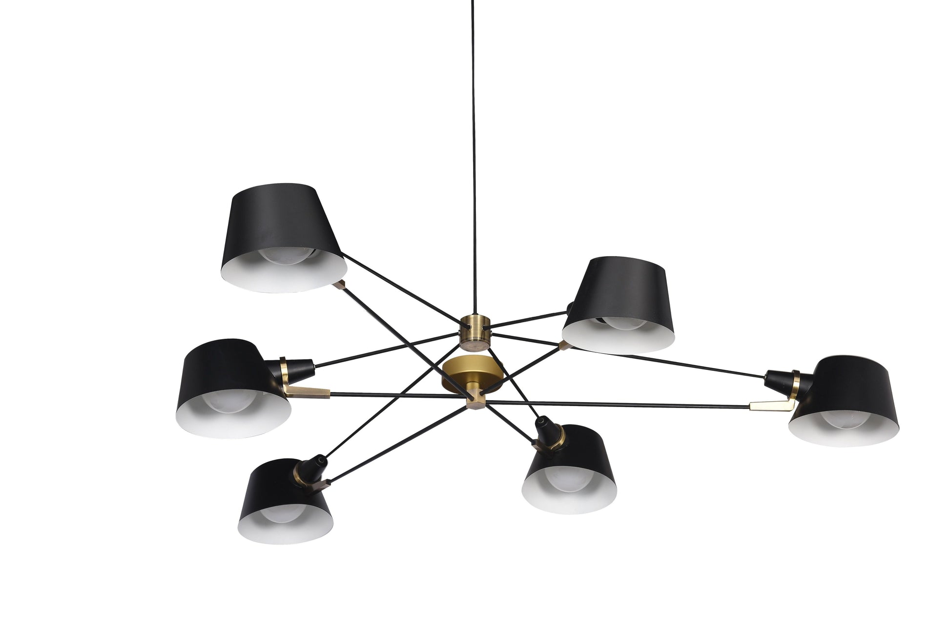 This exquisite ceiling fixture is in a black finish. The frame is made out of iron, and it comes with gold hardware accents and aluminum shades. The adjustable cord link makes this fixture suitable for most ceiling heights.