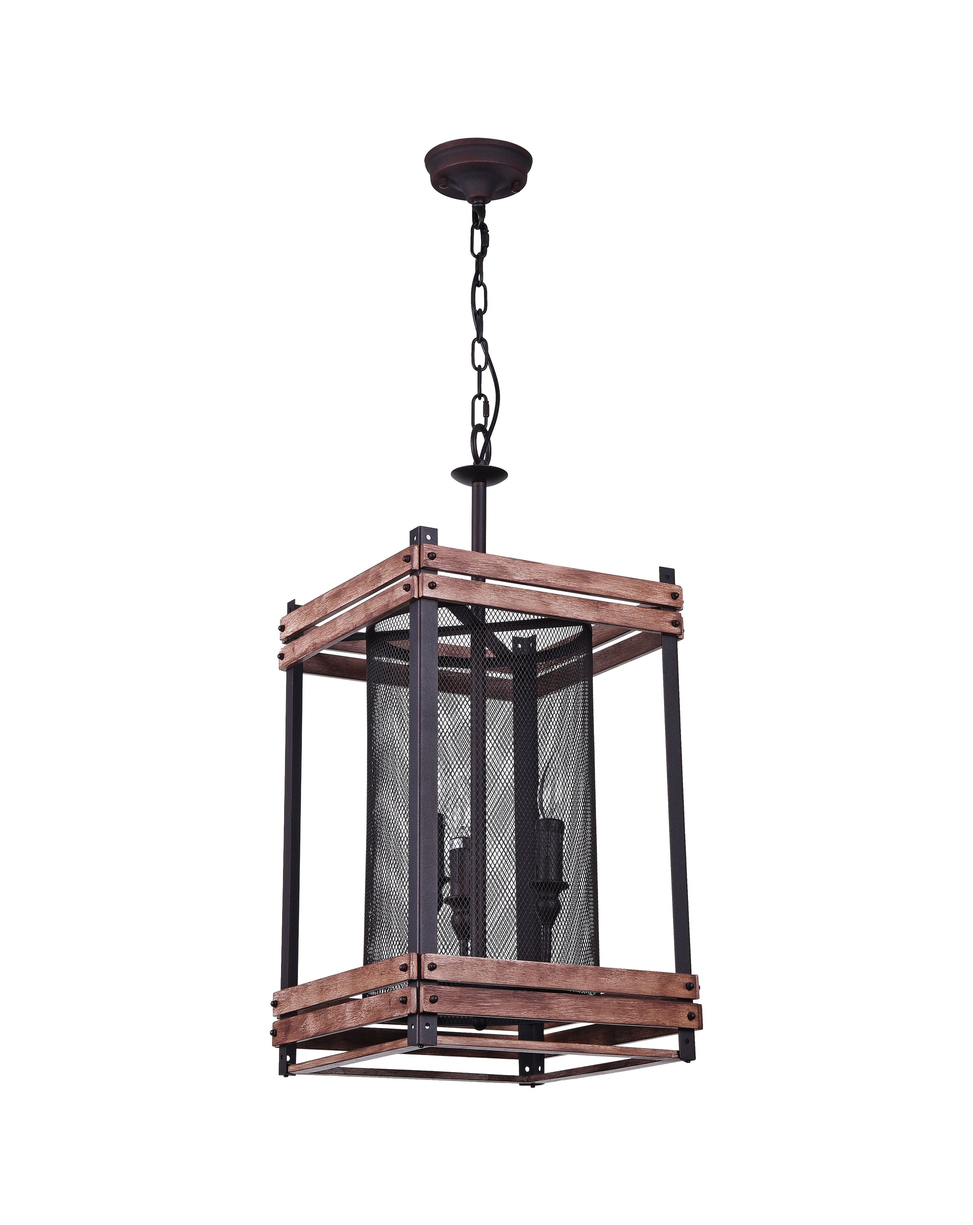 The shape of this fixture looks like a rustic box. The iron and wood frame is finished in black. It is great for foyers and entryways.
