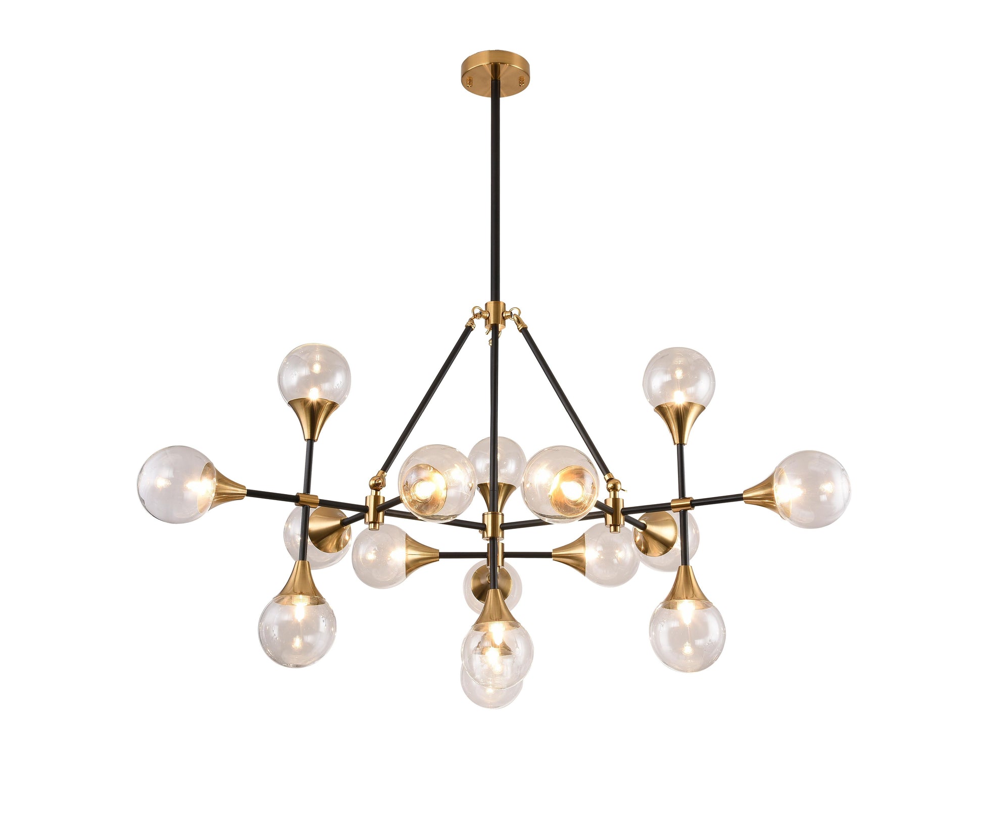 This exquisite ceiling fixture is in a black finish. The frame is made out of metal with gold hardware. It comes with glass shades in clear color. You can create a timeless feel while using modern forms