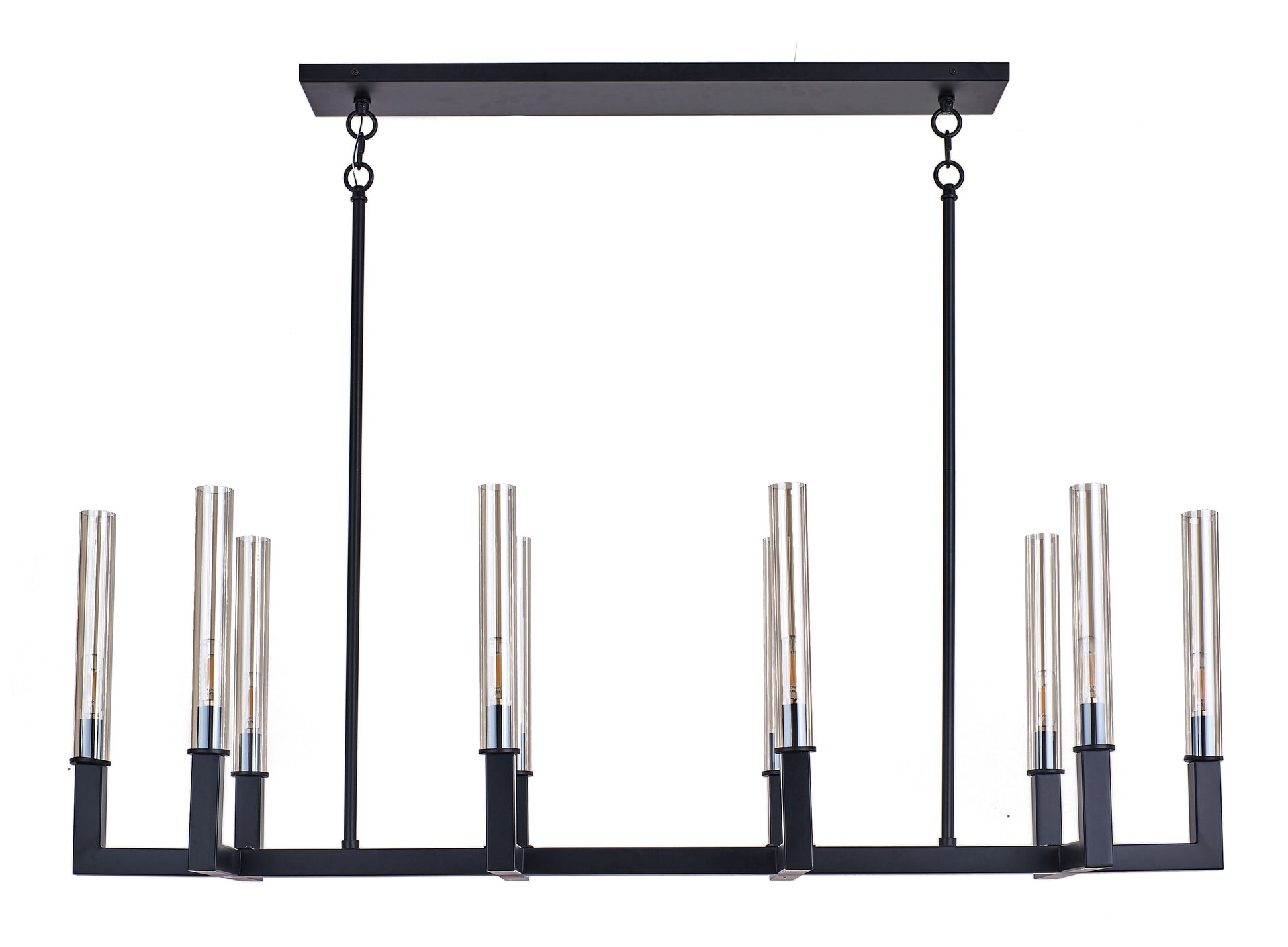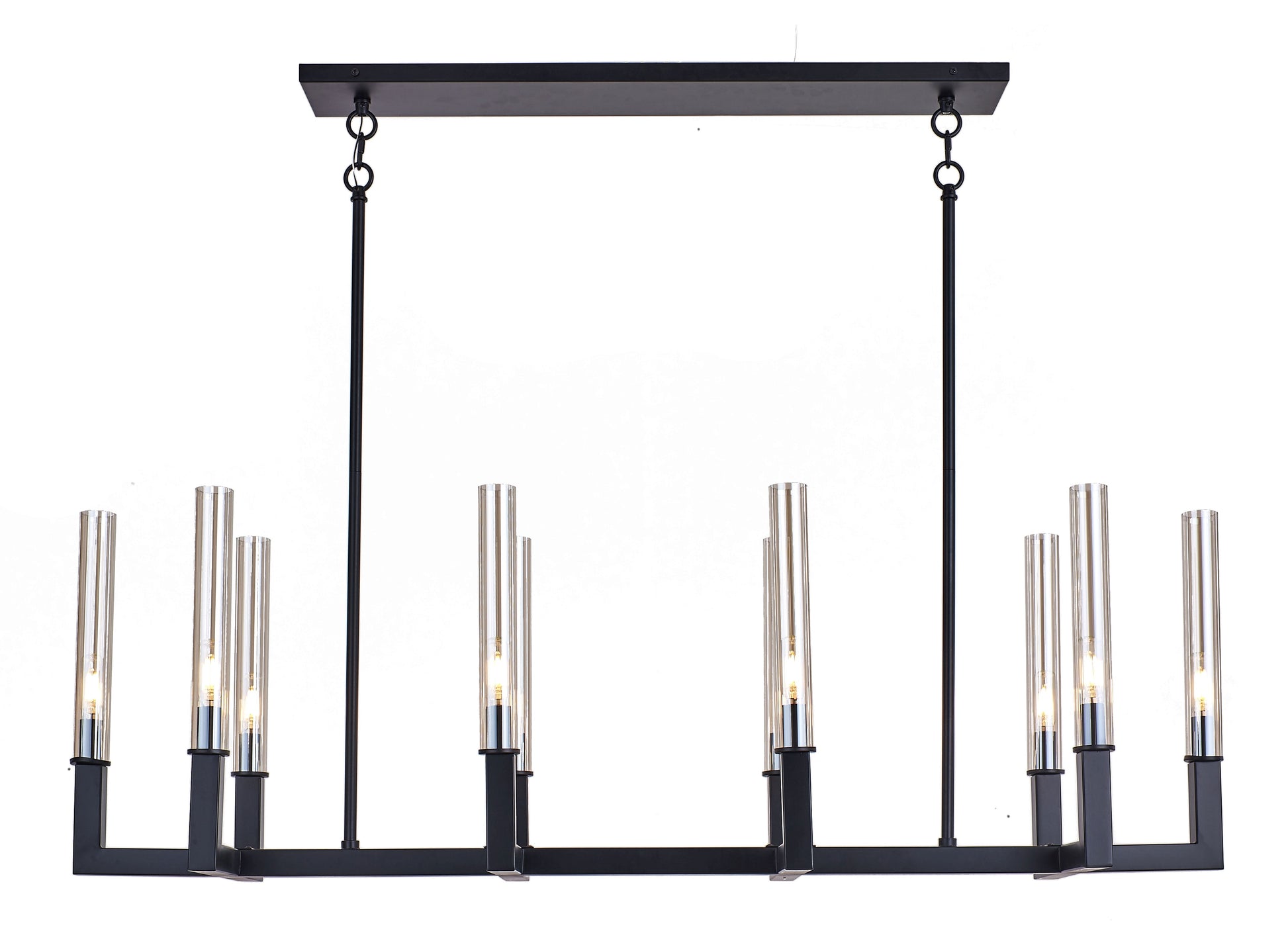 This exquisite ceiling fixture is in a black finish. The frame is made out of metal in a rectangular shape. It comes with glass tube shades in clear color.