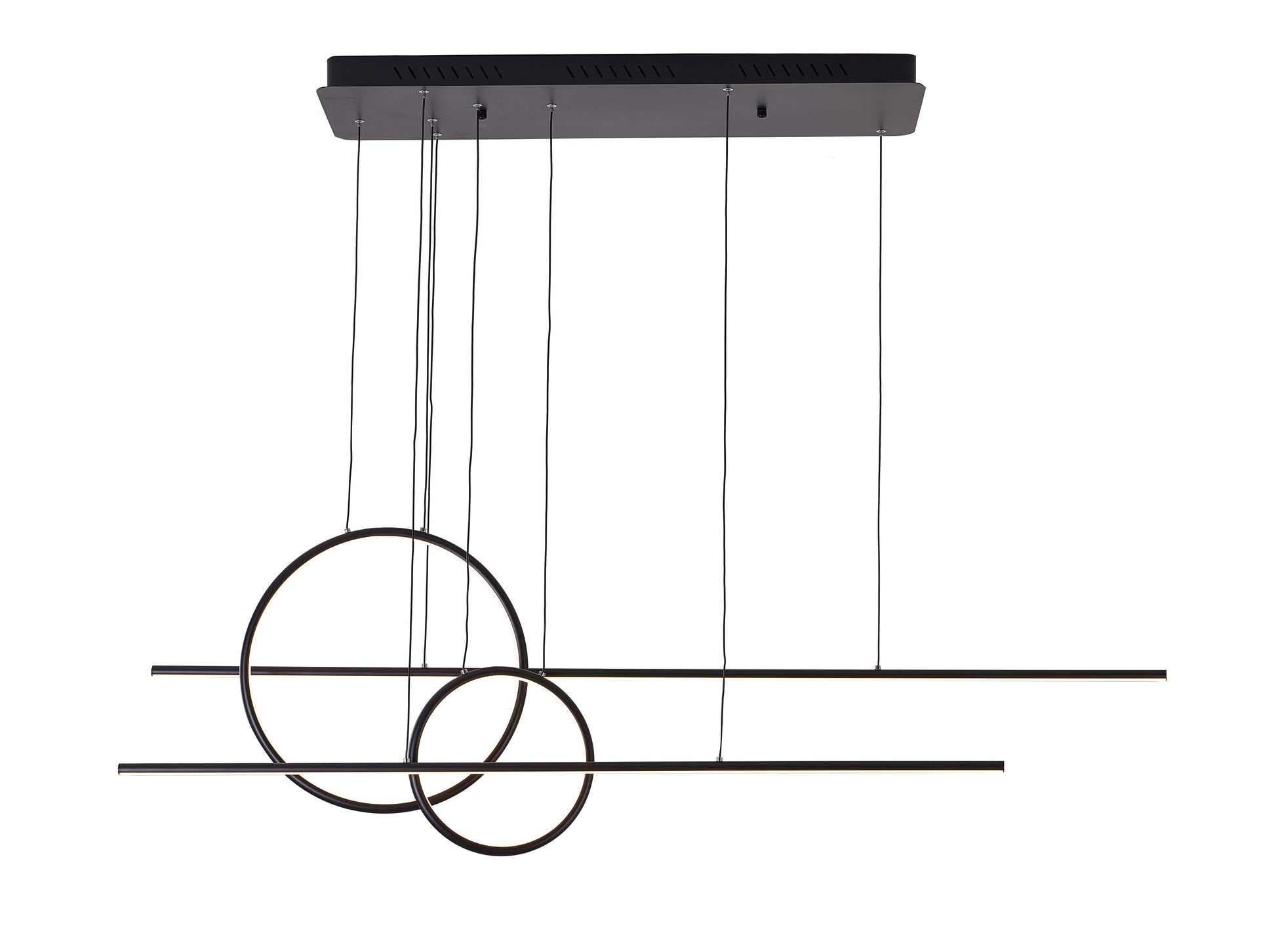 This LED chandelier is in a black finish. The frame is made out of iron, and the LED bulbs are integrated into the frame. It comes with white acrylic diffusers. The adjustable cord links make this fixture suitable for most ceiling heights.