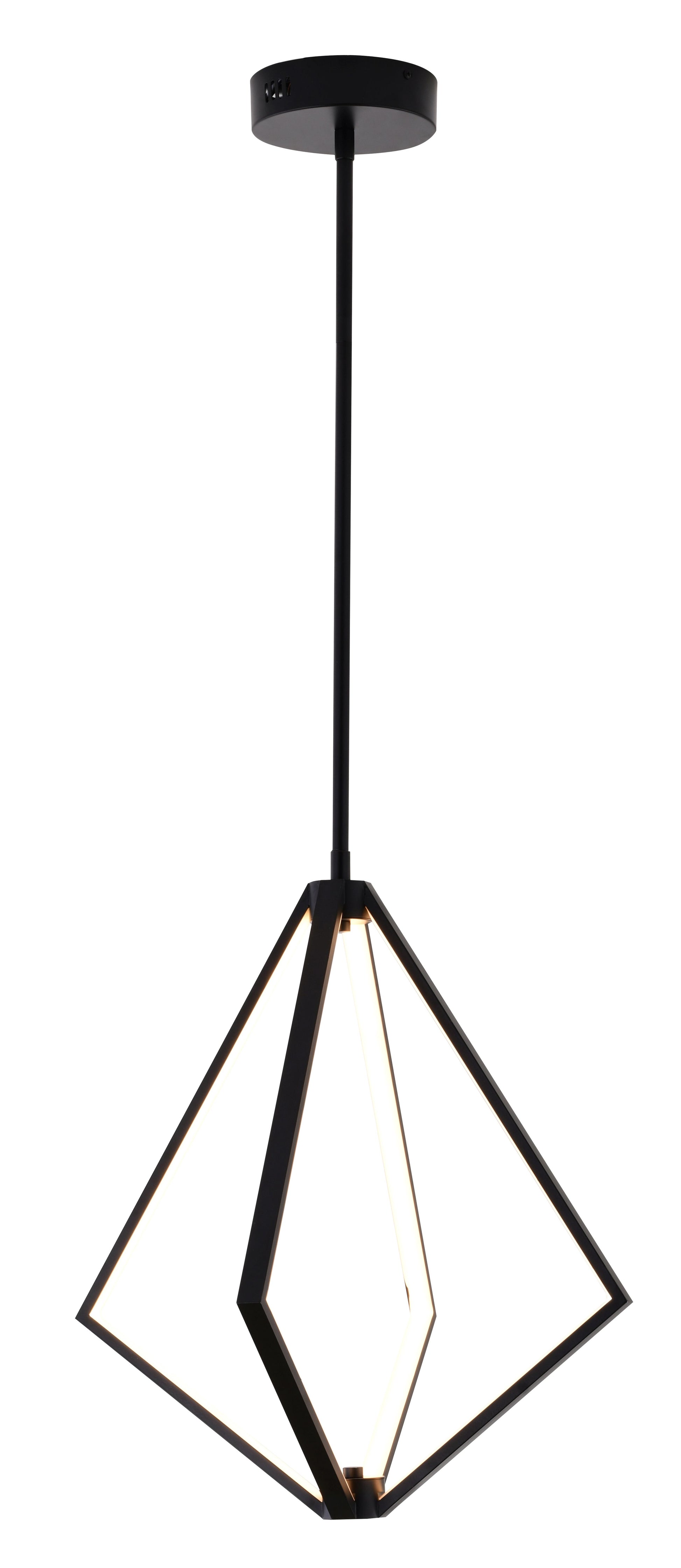 This special LED chandelier is in a black finish. The frame is made out of metal in a diamond shape with silicone diffusers. The LED bulbs are integrated into the frame. The adjustable rod link makes this fixture suitable for most ceiling heights.