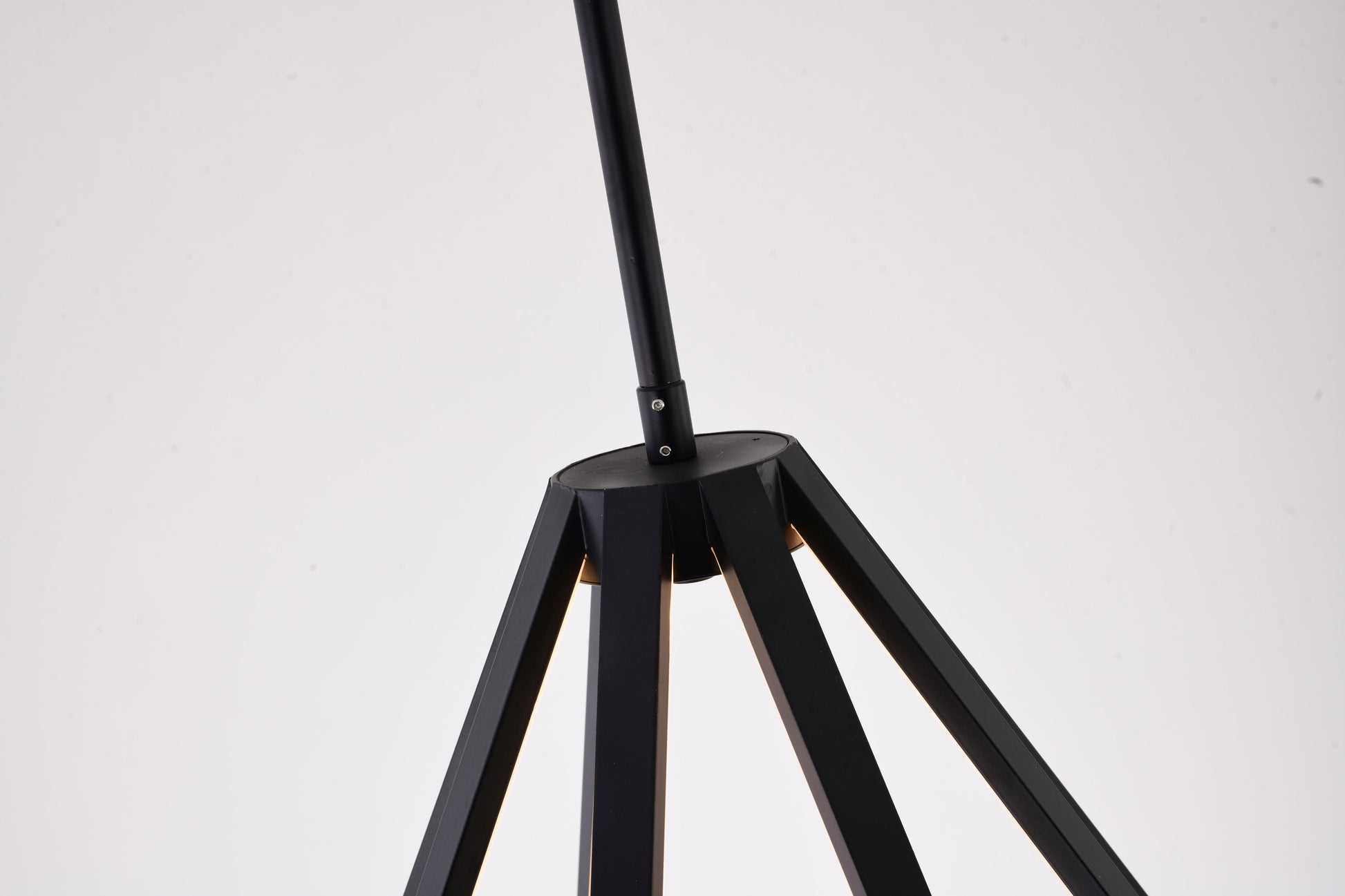 This special LED chandelier is in a black finish. The frame is made out of metal in a diamond shape with silicone diffusers. The LED bulbs are integrated into the frame. The adjustable rod link makes this fixture suitable for most ceiling heights.