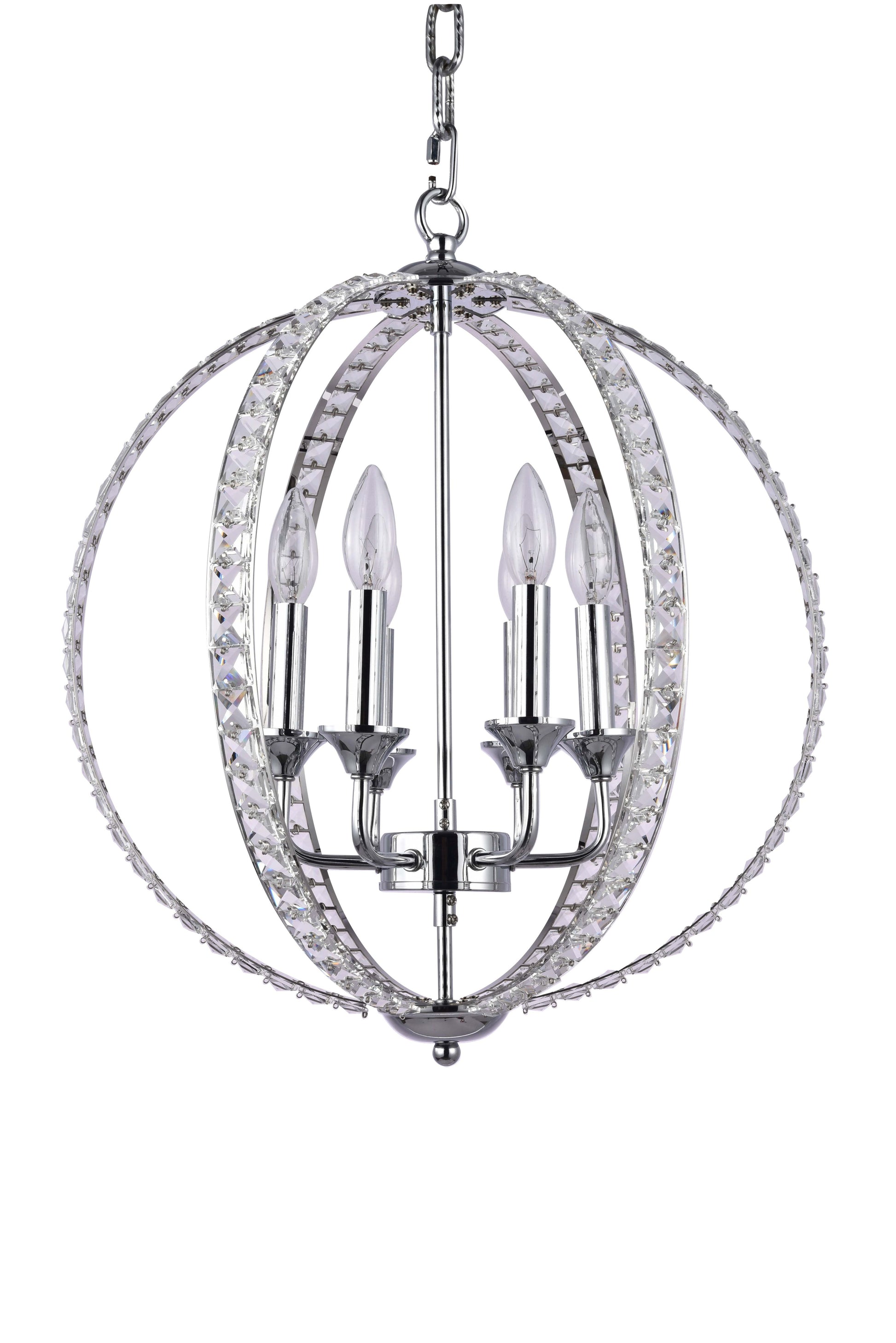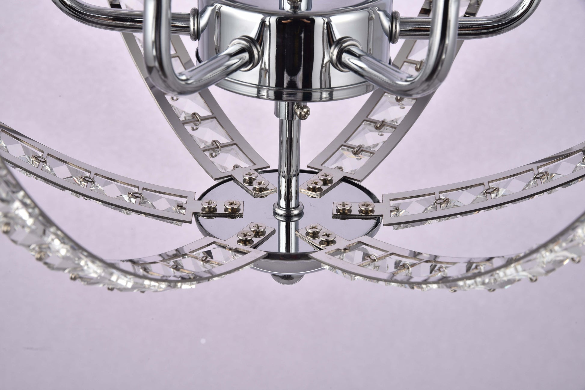 This unique chandelier is in a chrome finish. The frame is made out of stainless steel with clear crystal accents. It can be used in any room.