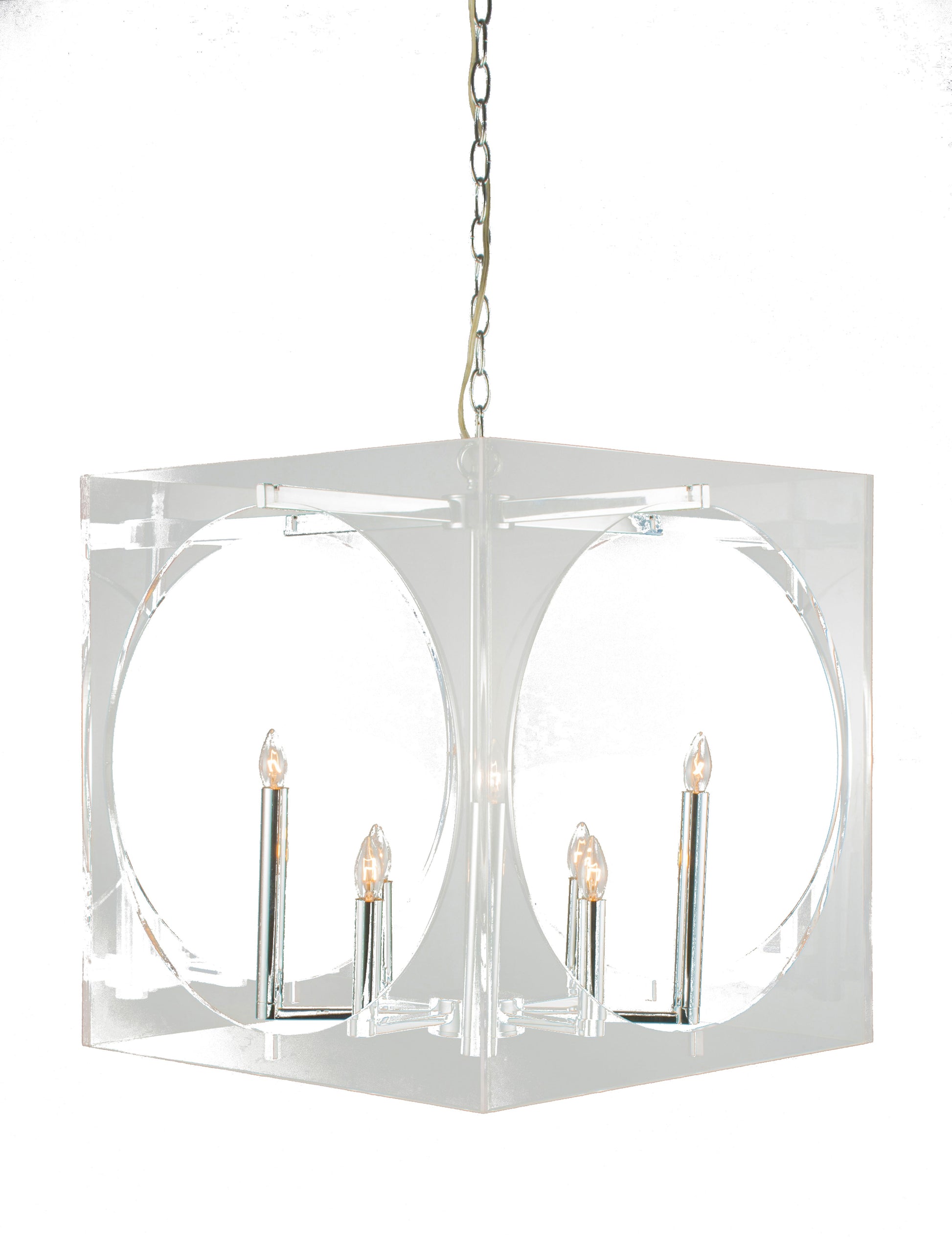 This ceiling fixture is in a chrome finish. The clear acrylic frame with round open hole adds more modern for this fixture. It comes with 8 E12 bulbs (sold separately) can provide better illumination. It can be used in any room, entryways, and more.