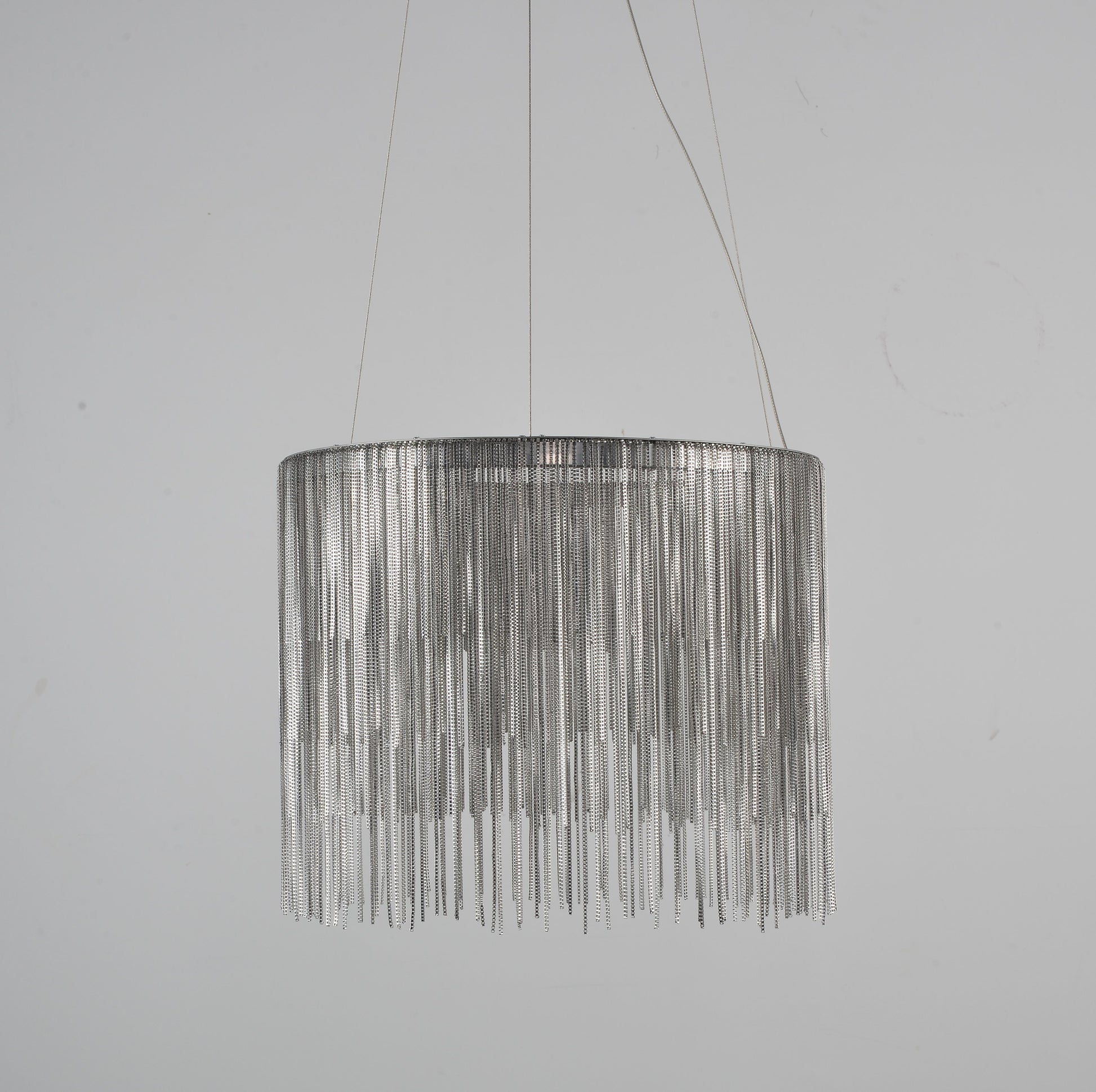 This exquisite LED lighting is in a chrome finish. The frame is made out of stainless steel with aluminum chain. The adjustable wire links made this fixture suitable for most ceiling heights.