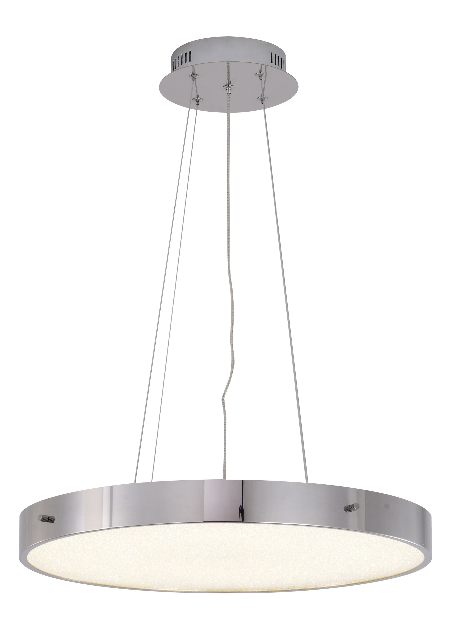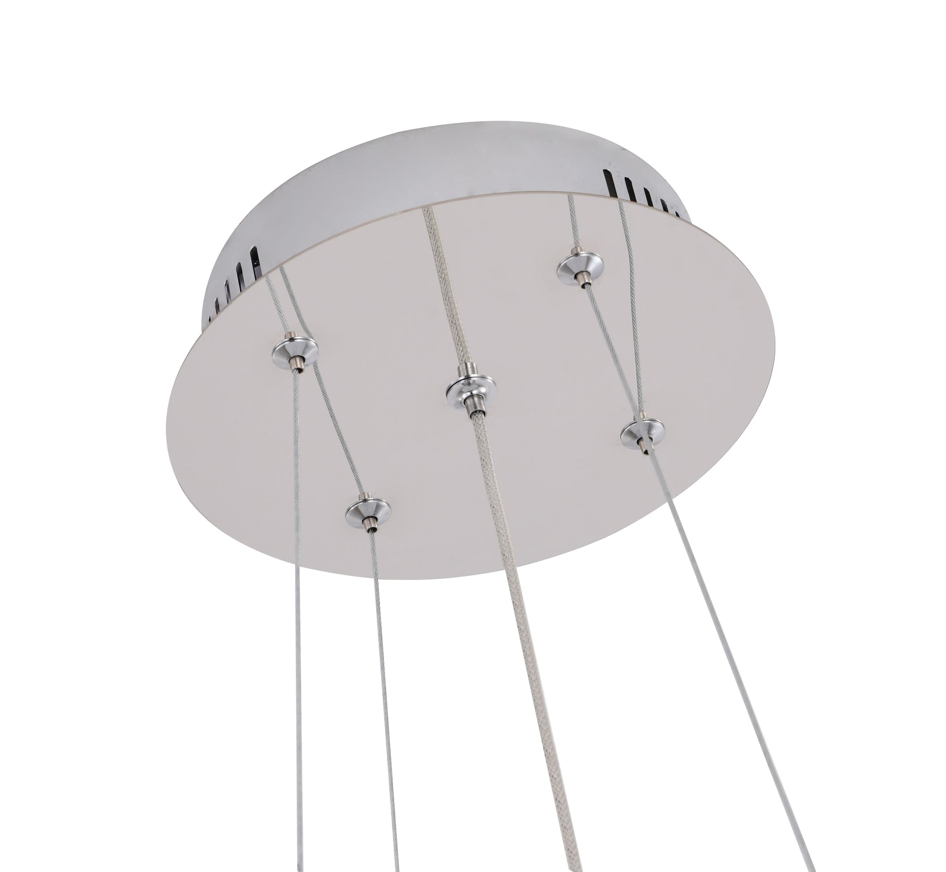 This exquisite LED chandelier has a chrome metal frame. The LED bulb is integrated into the frame. It comes with a beaded clear diffuser. It can be changed three LED color temperatures: 3000K, 4000K, and 5000K. The cord links can be adjustable and suitable for most ceiling heights.