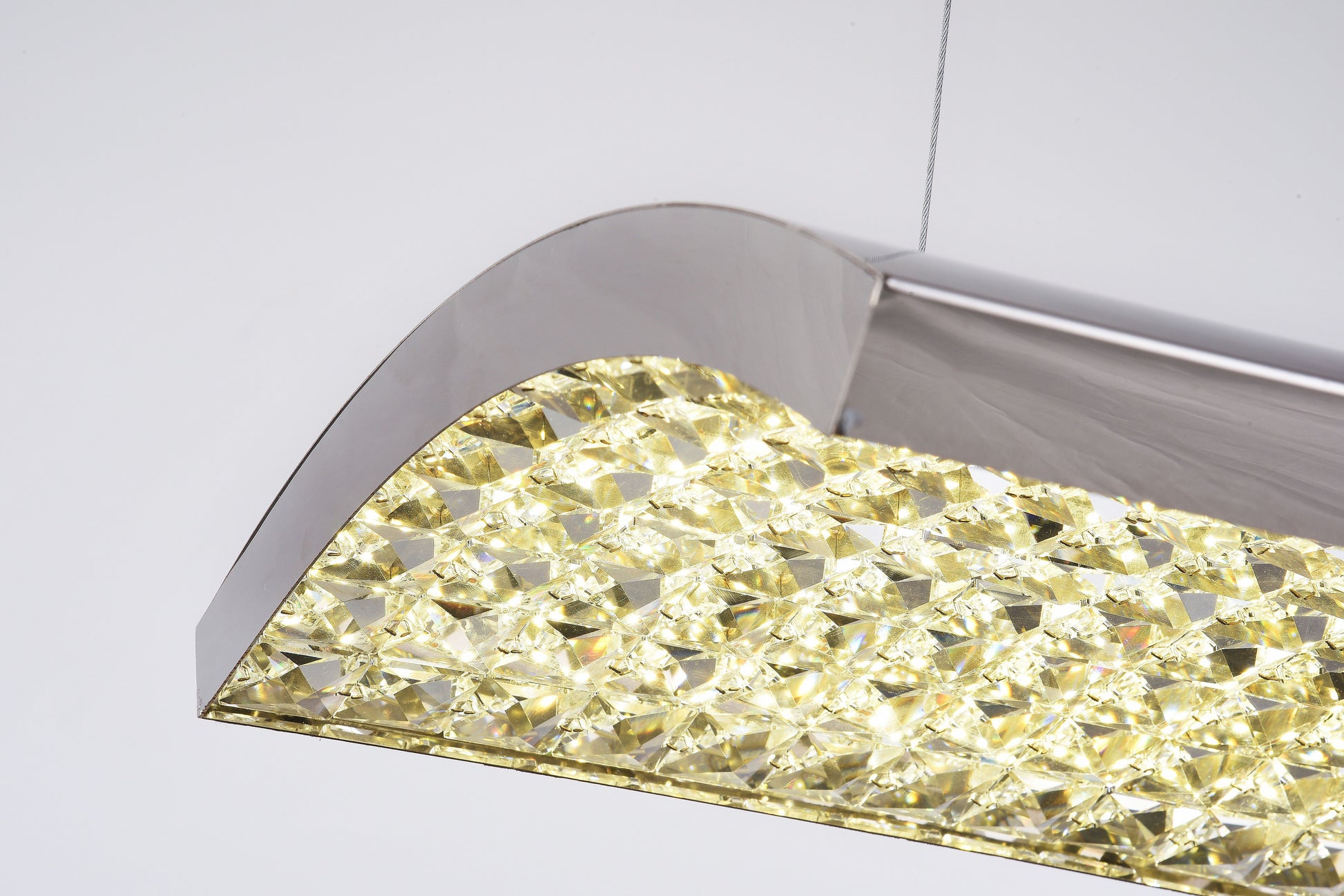The exquisite of LED lighting is in a chrome finish. The shape of frame likes a curve and is made of stainless steel. It comes with crystal in clear color interior of frame and LED light is integrated in the frame.