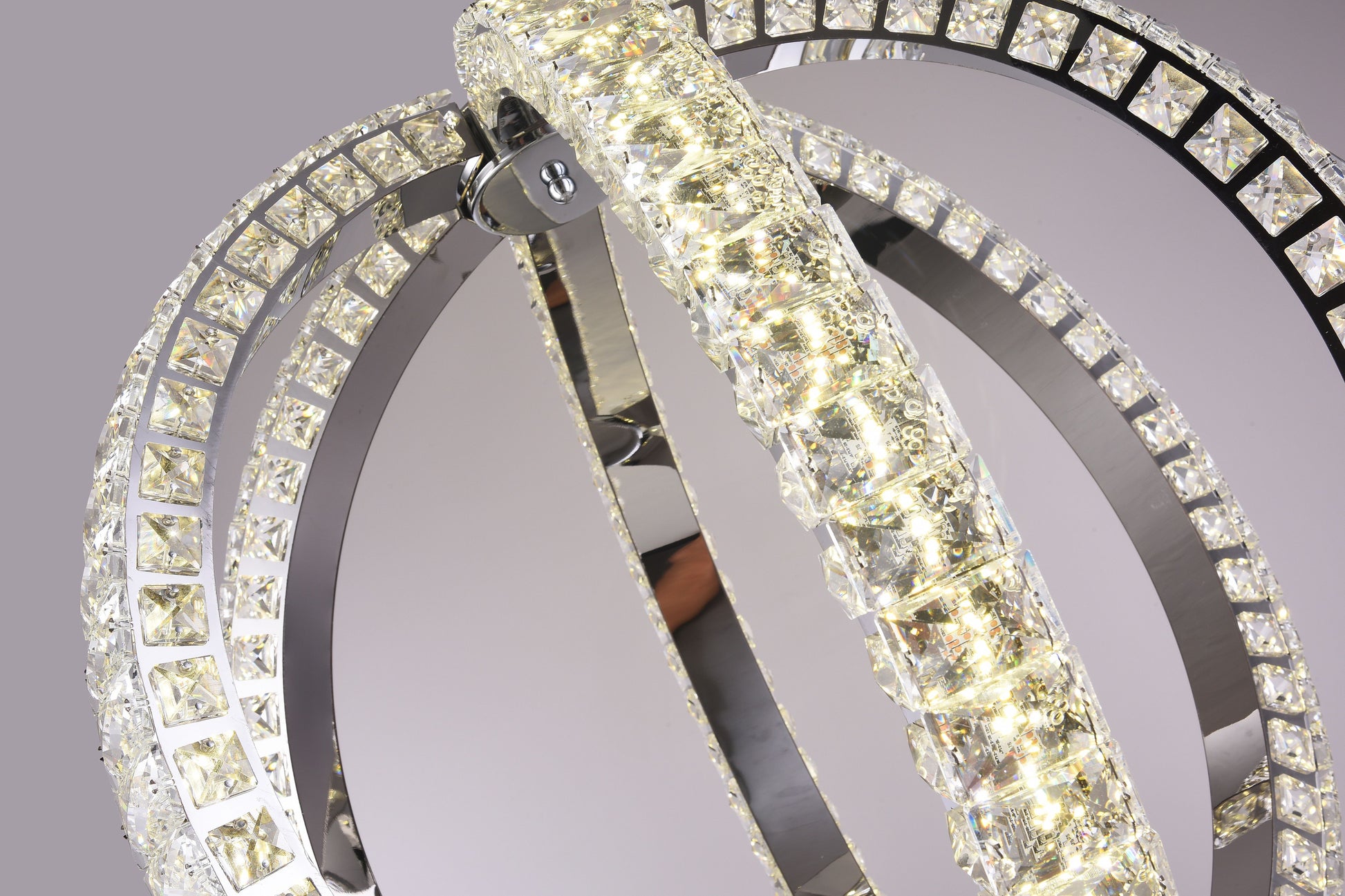 This dimmable LED flush mounts is in a chrome finish. The frame is made out of stainless steel with clear crystal accent.