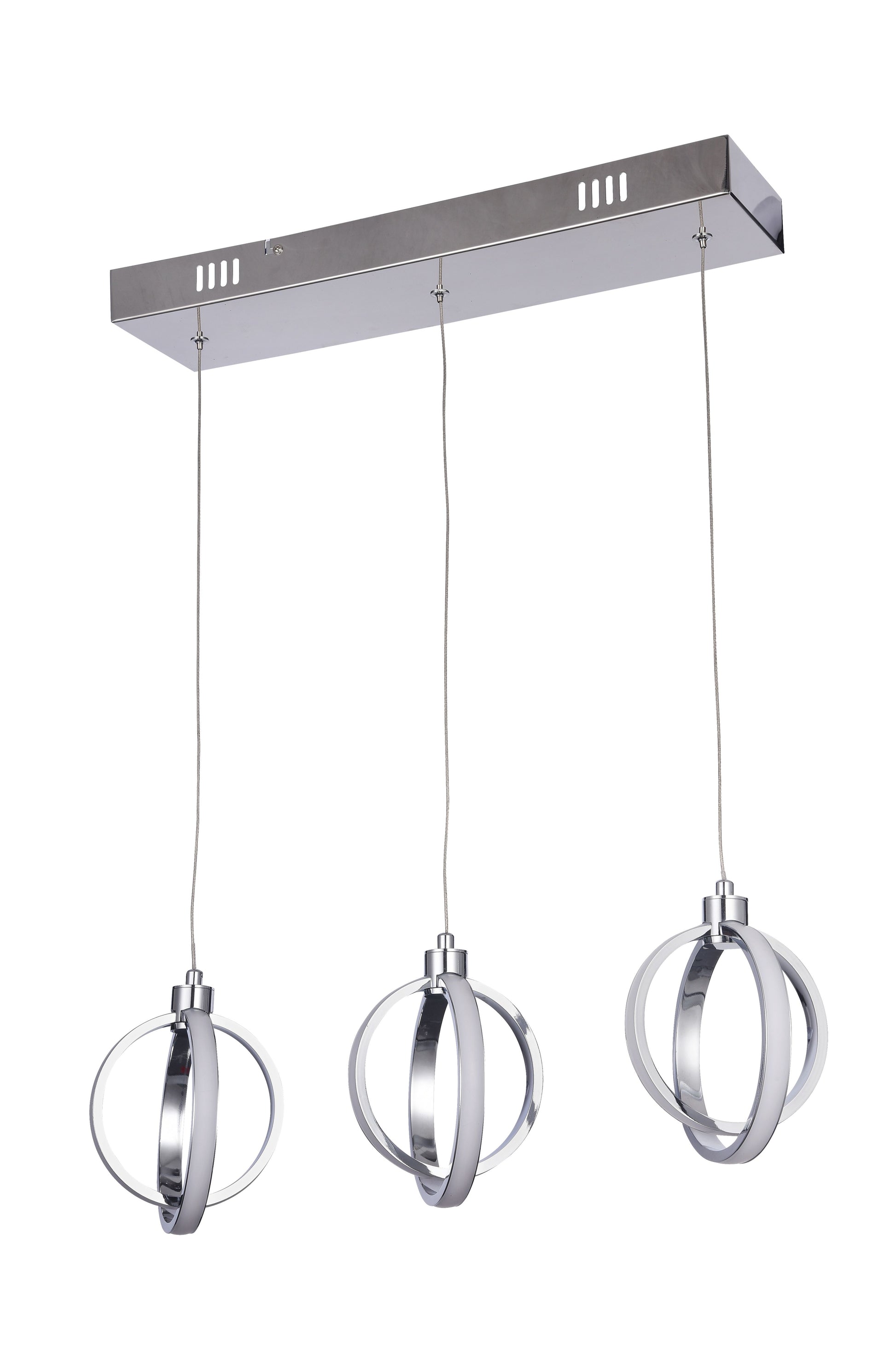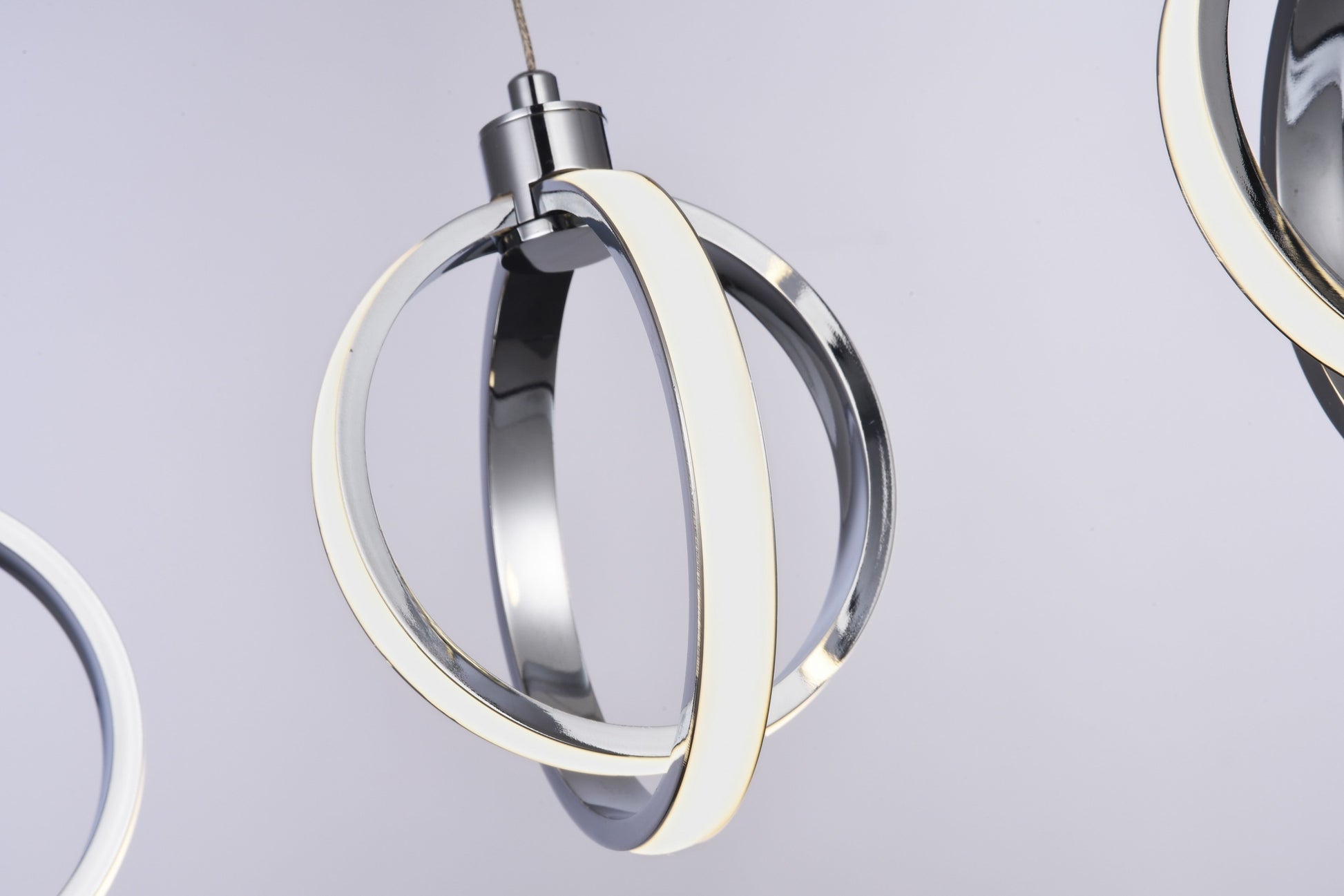 This modern LED lighting is in a chrome finish. The frame is made out of metal in an ORB shape, and LED bulbs are integrated into the frame. The adjustable rod link makes this fixture suitable for most ceiling.