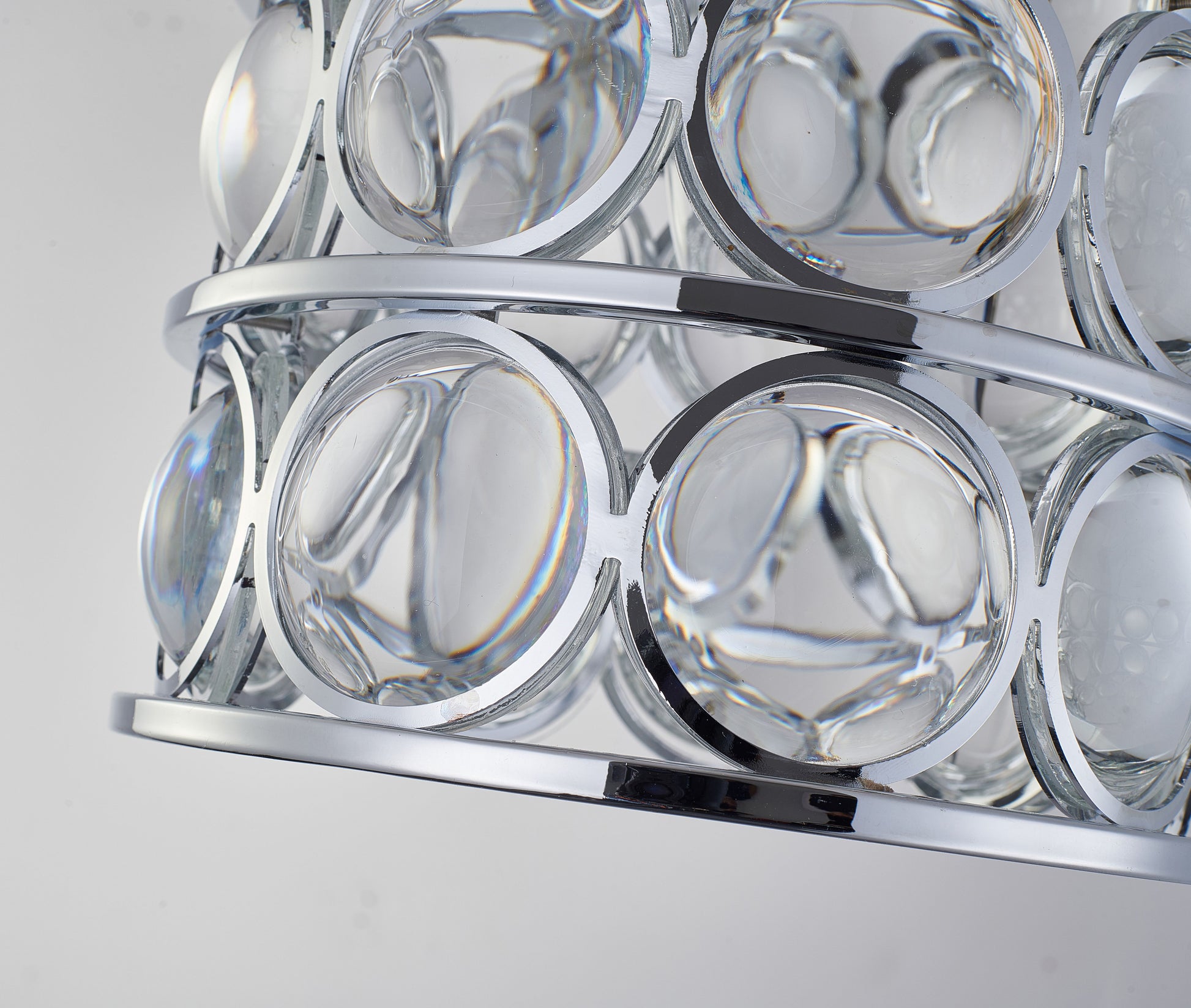 This exquisite single pendant lighting is in a chrome finish. The frame is made out of metal, and it comes with magnifying glass in clear color. The adjustable chain link makes this fixture suitable for most ceiling heights.