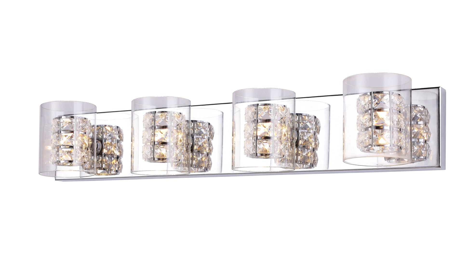 This modern LED wall sconce has a chrome metal frame. It comes with clear crystal accents. The LED bulb is integrated into the frame. You can create a timeless feel while using modern forms