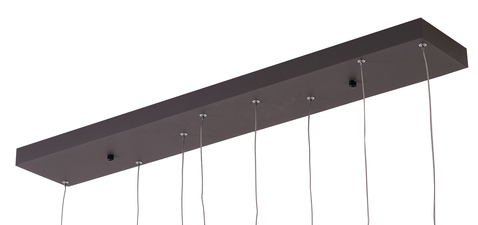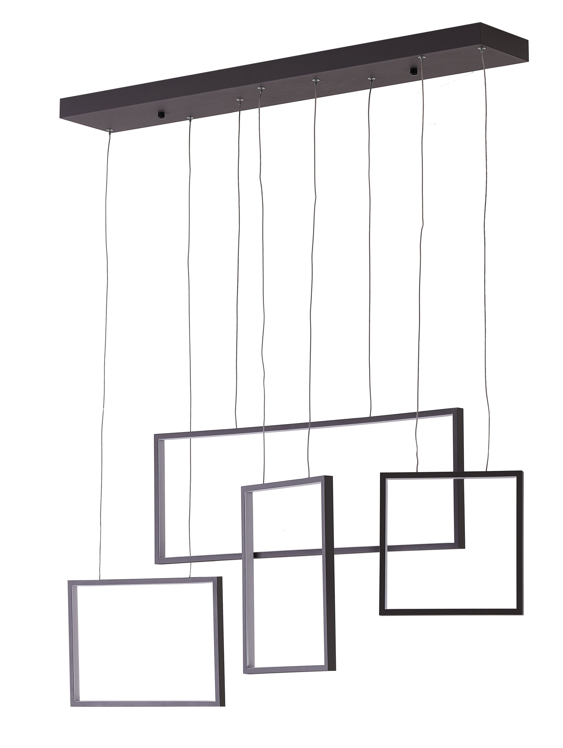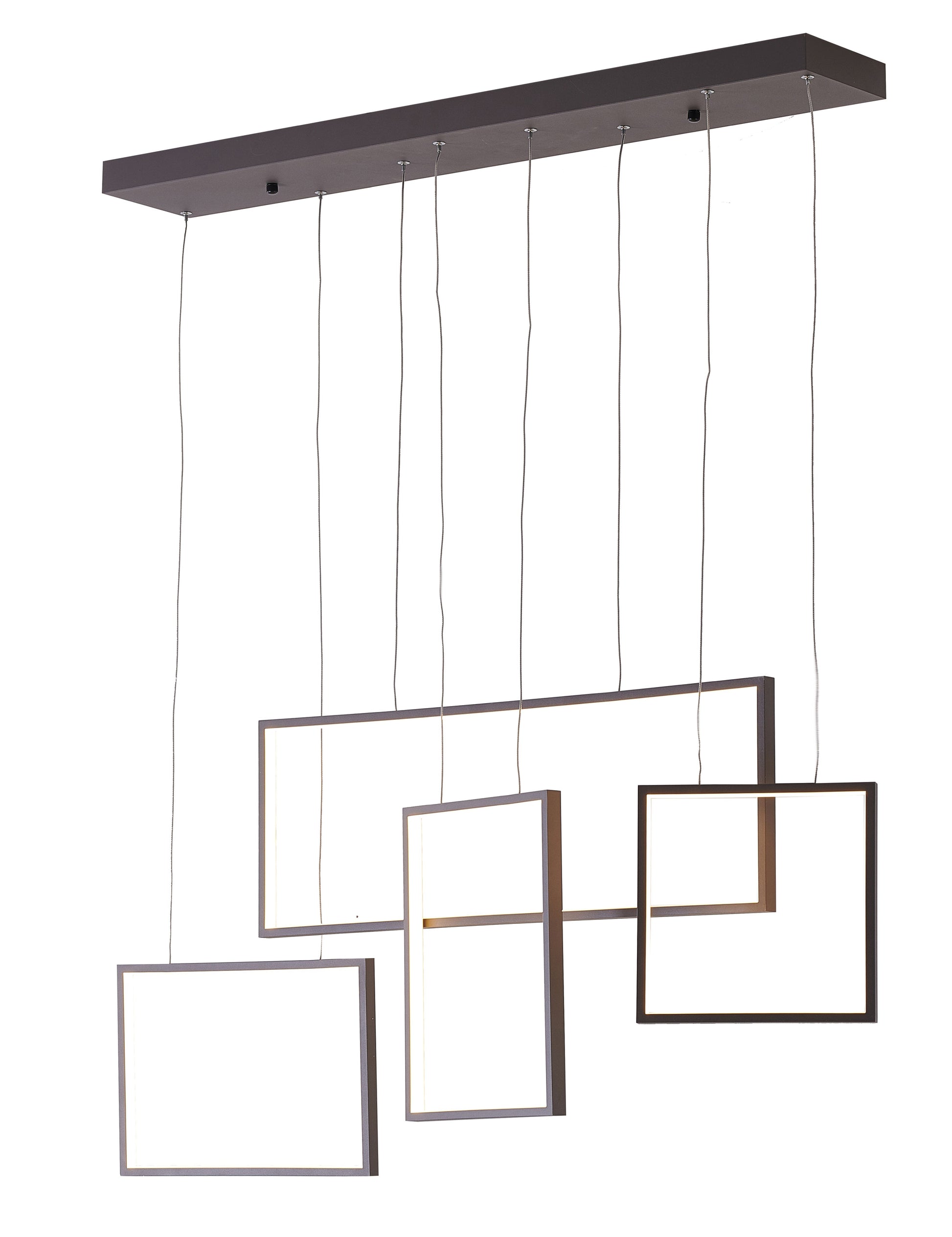 This exquisite LED chandelier is in a coffee brown finish. The frame is made out of iron, and it comes with white diffusers. The LED bulbs are integrated into the frame. The adjustable cord links make this fixture suitable for most ceiling heights.