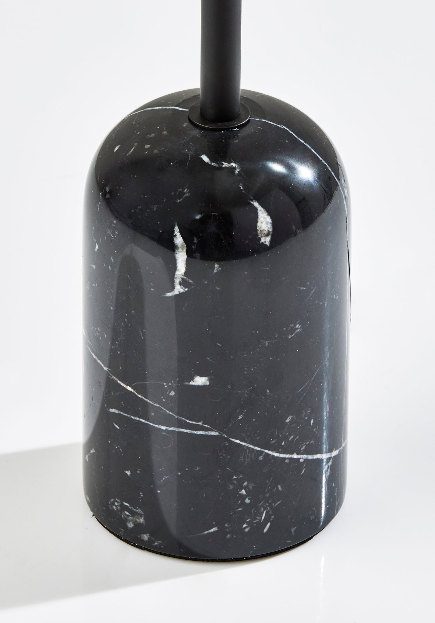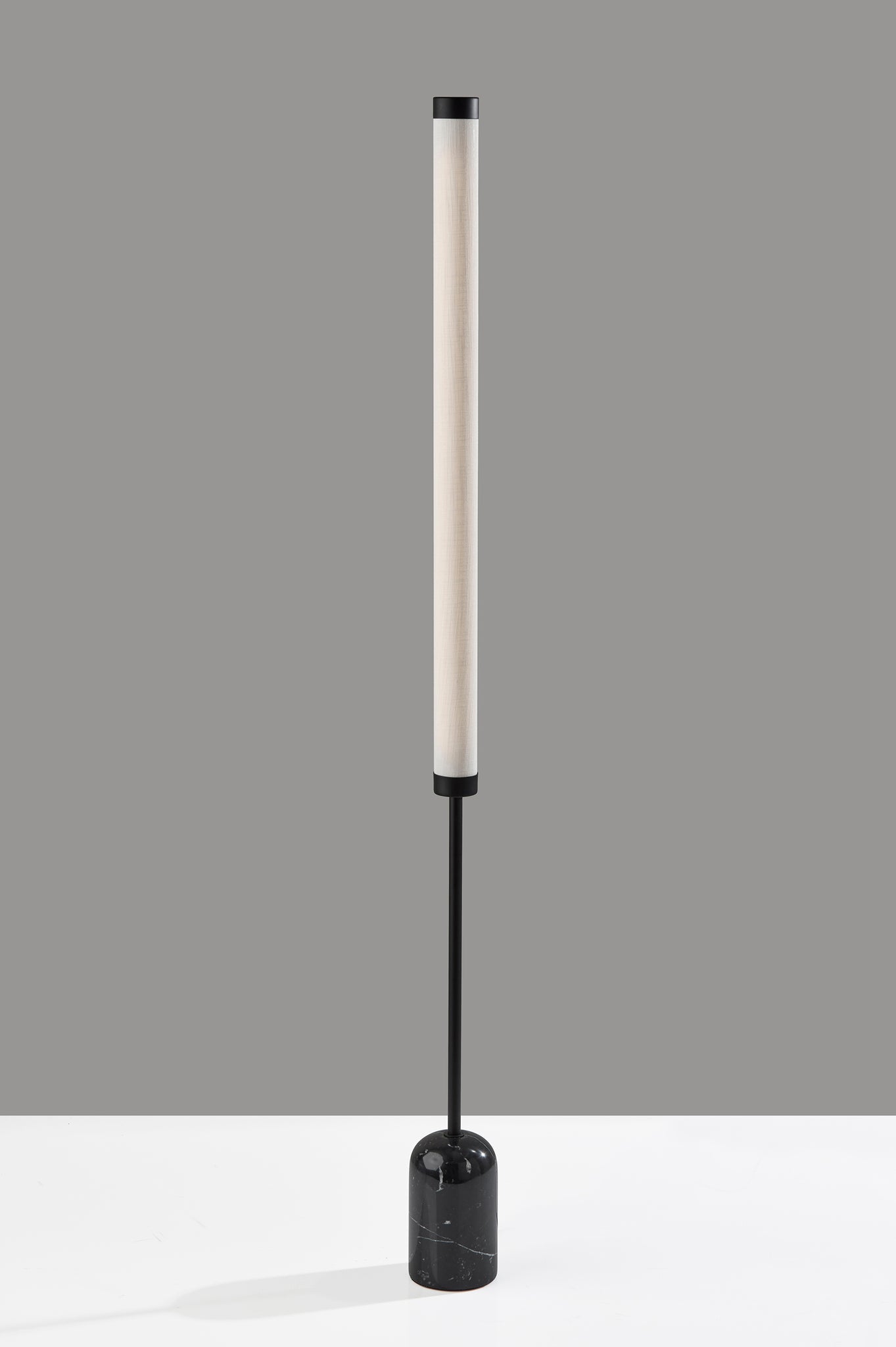 The Dorsey floor lamp combines a rich mix of materials, rounded contemporary design, and LED energy efficiency for the perfect accent lighting for your space. The 54.5" tall and slim 4.25" diameter lamp features a domed base in black marble. A black pole supports a cylindrical white textured cotton shade. Both economical and versatile, the integrated 24W eco-friendly LED produces up to 1,200 lumens to brighten your space. Operated by a touch switch conveniently located on the top of the light shade, the lamp projects light with three brightness settings and three color temperature settings all controlled by the touch of a finger. The lamp is also powered by a 5' black cord. Complete your décor with the Dorsey LED table lamp.