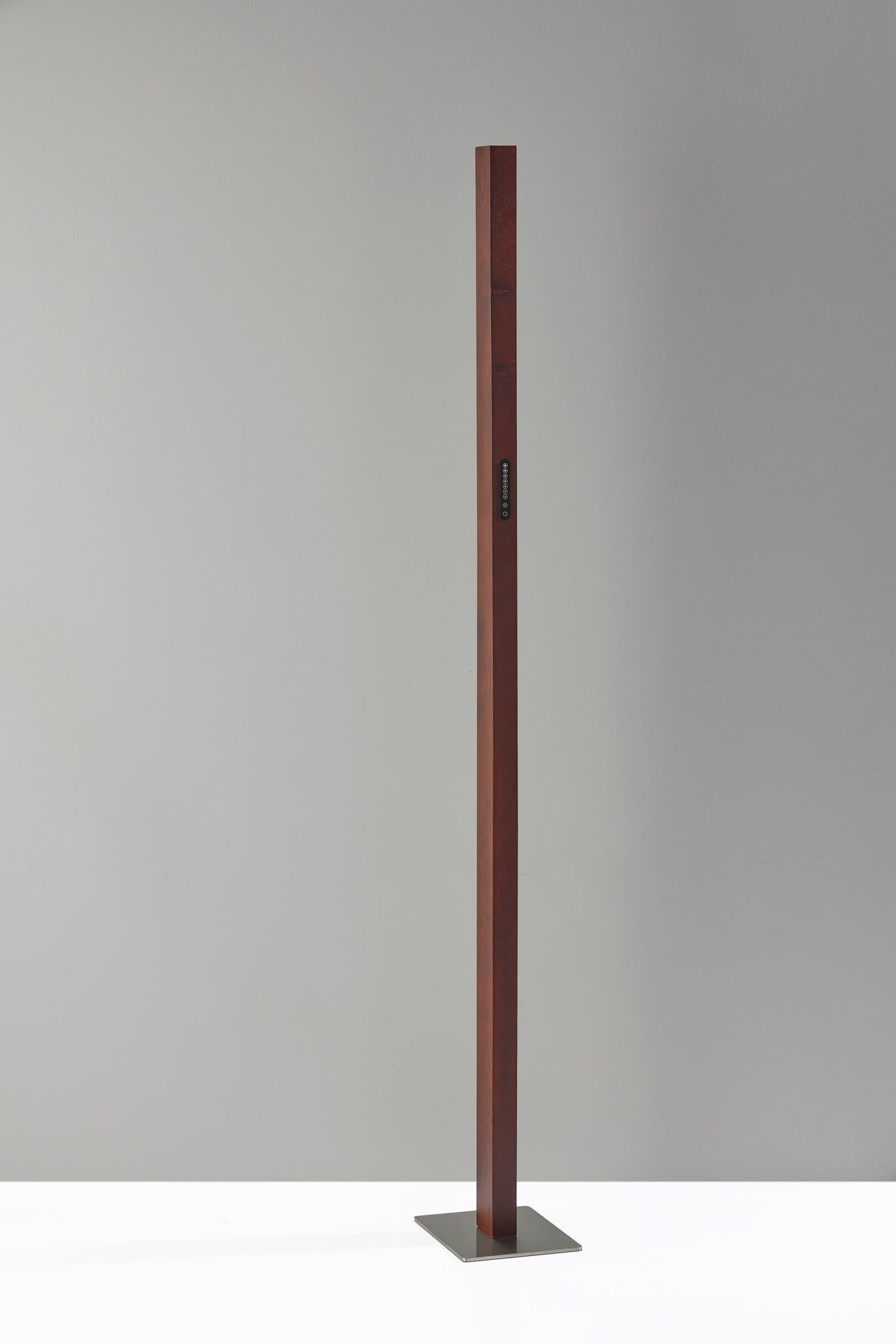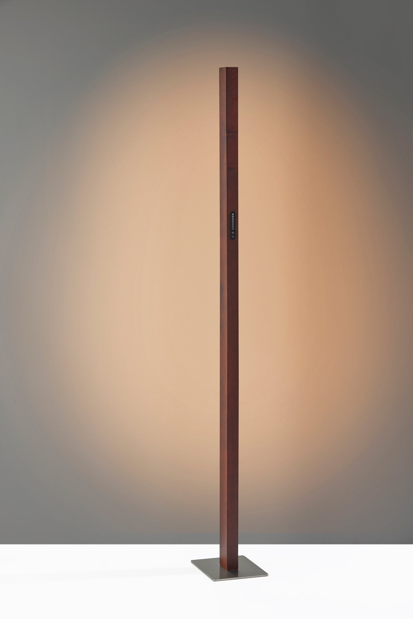 The Elliott LED floor lamp is the perfect addition to contemporary, minimalist décor. Its rectangular lines and stripped-down architecture combined with smart touch technology create a lighting solution that is both stylish and versatile. The 60.5 tall lamp features a rectangular wooden body with a walnut finish and an integrated 32W LED light. The light produces 2,560 lumens that are softly distilled by the 57.5 tall frosted diffuser. Operated by a discrete smart touch switch located on the rectangular body, the lamp has six brightness settings and six color temperature settings to choose from so that the lighting can be fine-tuned to suit your space and your mood. The tall wooden body rests upon a low-profile, 7 x 8.75 rectangular brushed steel base.