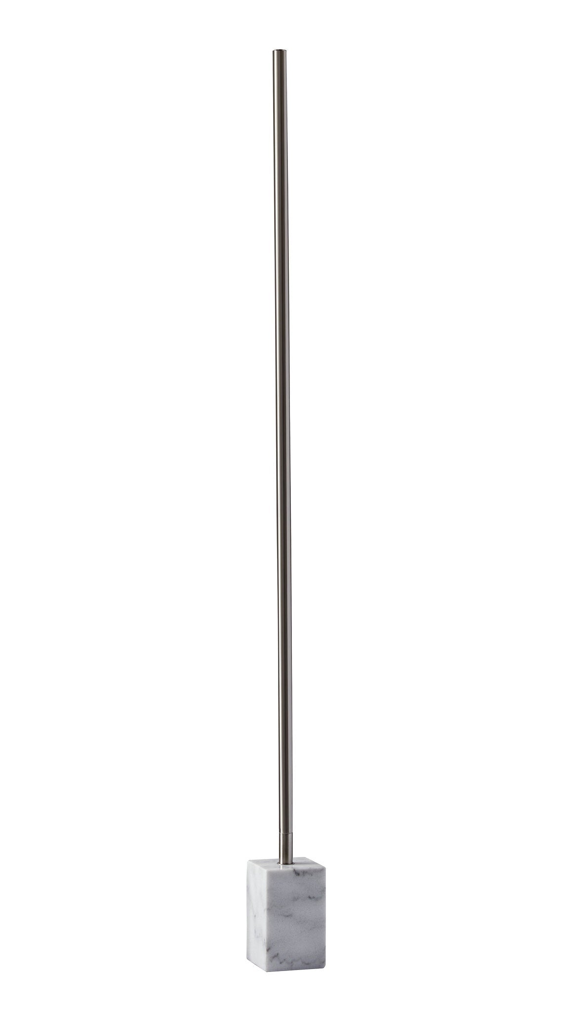 Slim and sleek, the Felix LED Wall Washer is a must-have for the contemporary, minimalist home. A long, 1" tube emits 2,500 lumens of fully dimmable light that reflects off of the wall, filling the room with a warm, ambient glow. A chunky, rectangle shaped white marble base adds a touch of elegance to this modern style. This design is available in both a brushed steel and antique brass finish. A touch dimmer switch is conveniently located at the top of the shade. This lamp is not smart outlet compatible and has a clear cord. The LED lights are integrated into the lamp and are not replaceable, but last 50,000 hours.