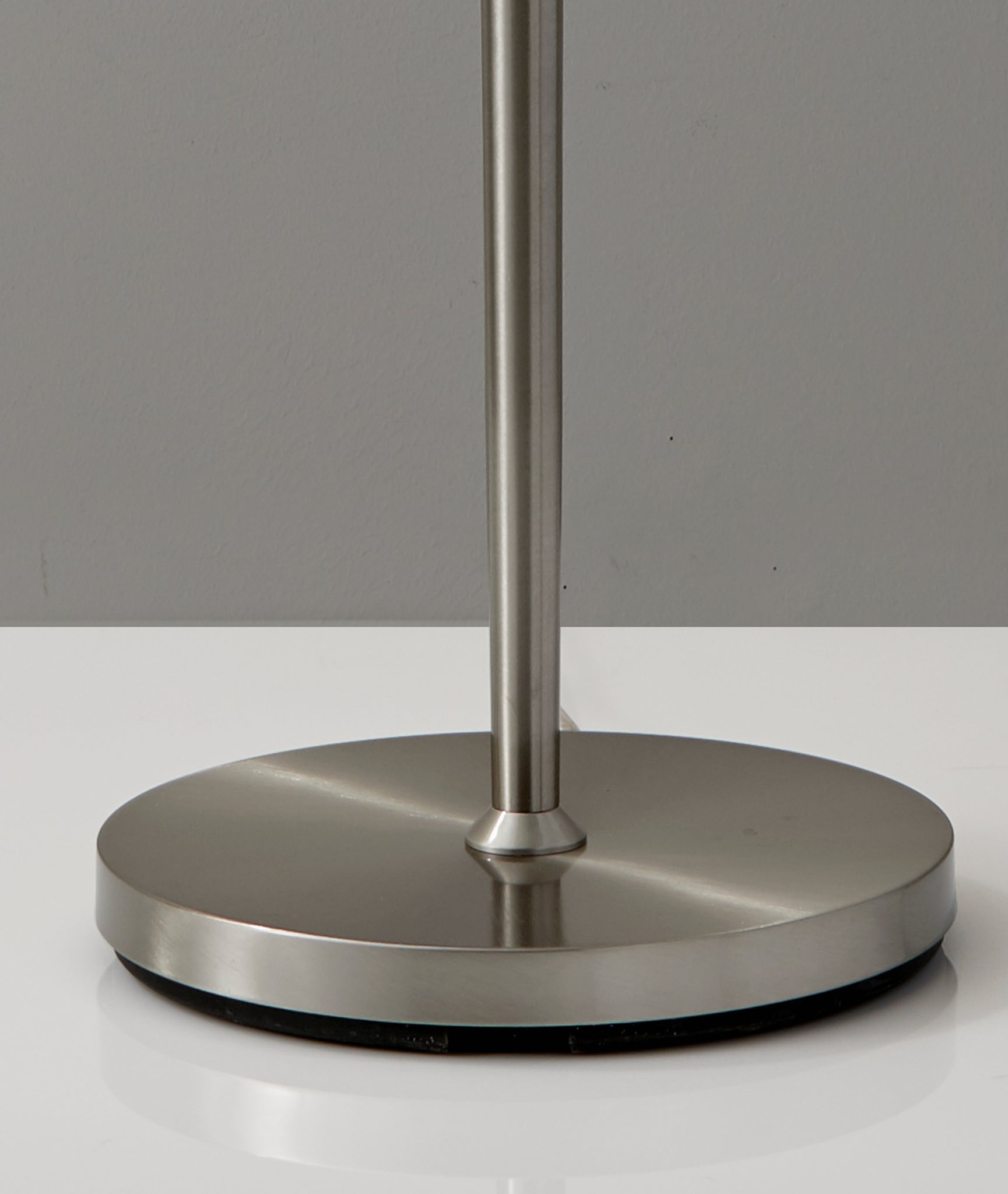 Simplicity meets modern in the elegant Hayworth floor lamp. A beautifully textured white linen drum shade is paired with a tapered brushed steel pole. This timeless style is perfect fot a living room, bedroom, office or den.. A pull chain switch easily turns the lamp on and off. This lamp has a clear cord and is smart outlet compatible. Bulb is not included.