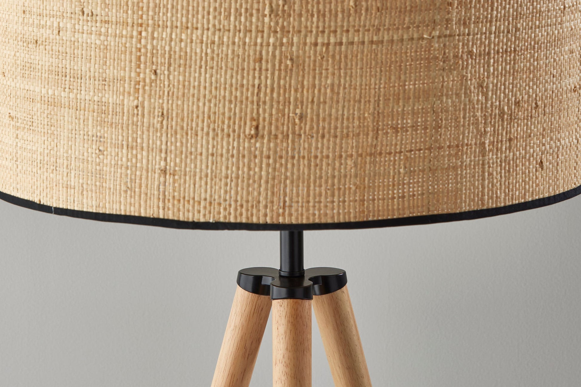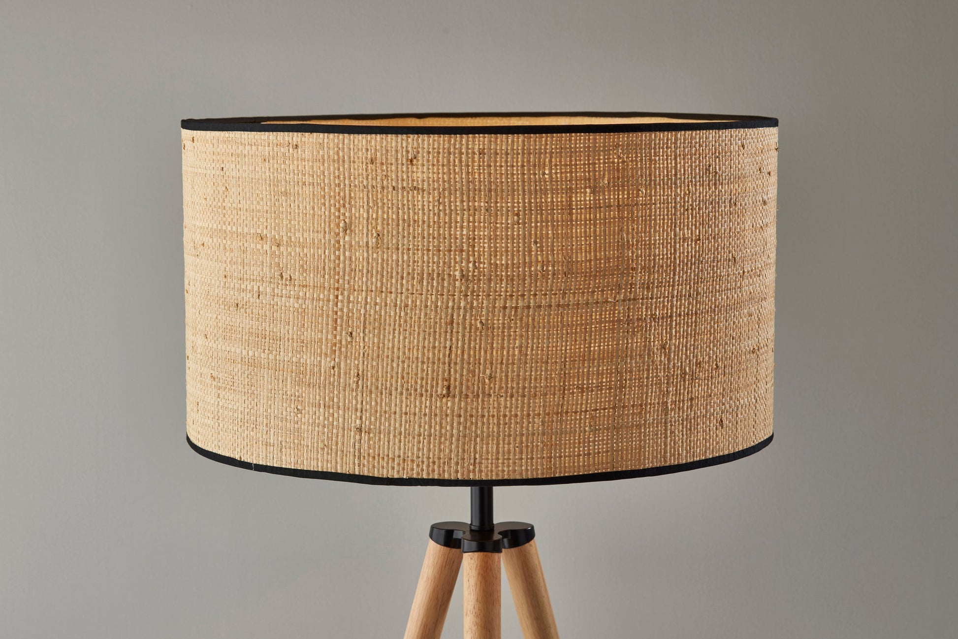 The Jackson floor lamp adds natural elements to the contemporary tripod design for a stunning complement to any décor. The natural wood tripod base is sturdy and stylish and features black metal detailing. Topping the lamp is a short natural rattan drum shade that highlights the texturing of the material as it disperses the light from a 150W bulb. The lamp shade is also trimmed with black fabric along the top and bottom to match the black detailing. A 3-way rotary socket switch provides a variety of lighting options, allowing you to easily adjust the brightness between low, medium, and high, while the lamp is powered by a 5' cord covered in beige fabric. The Jackson floor lamp is also available with black wood to complement contemporary style or a walnut finish for a traditional feel. Complete your décor with the coordinating Jackson table lamp.