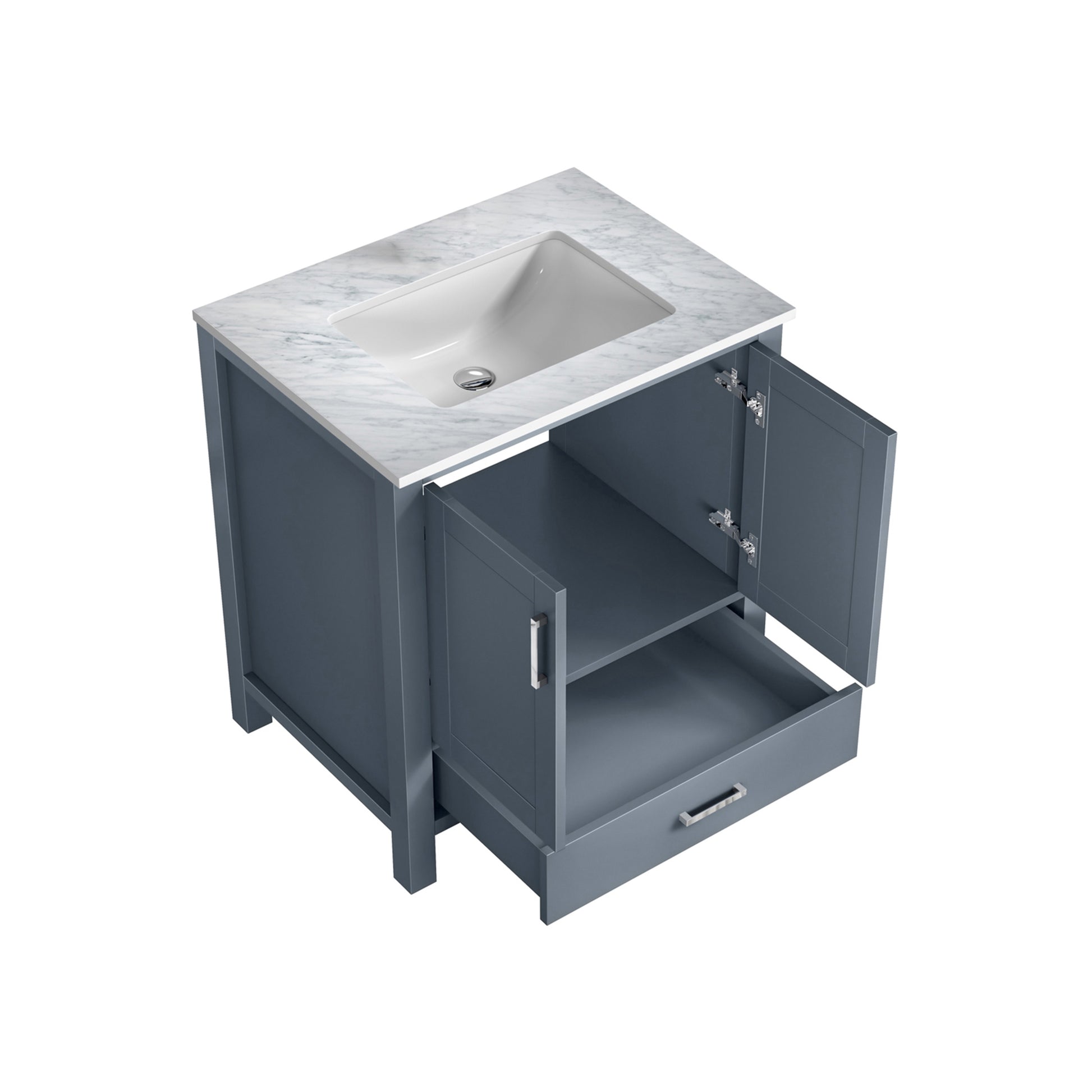Jacques 30" Dark Grey Single Vanity, White Carrara Marble Top, White Square Sink and no Mirror