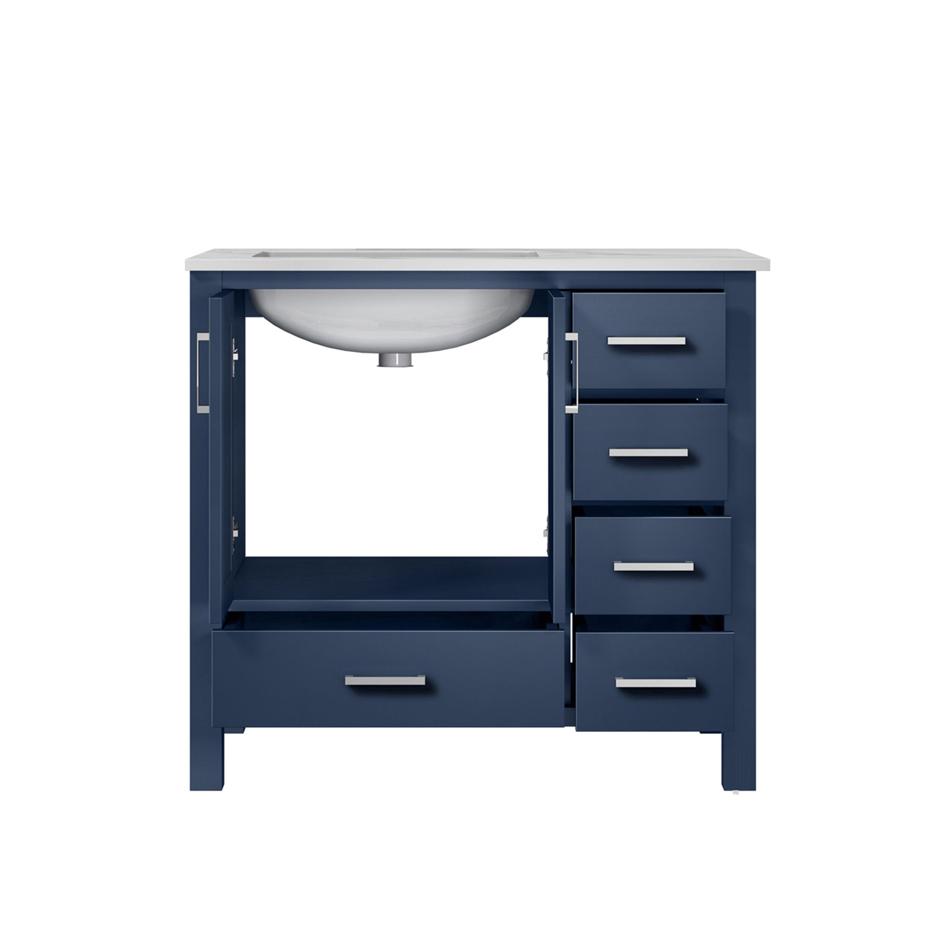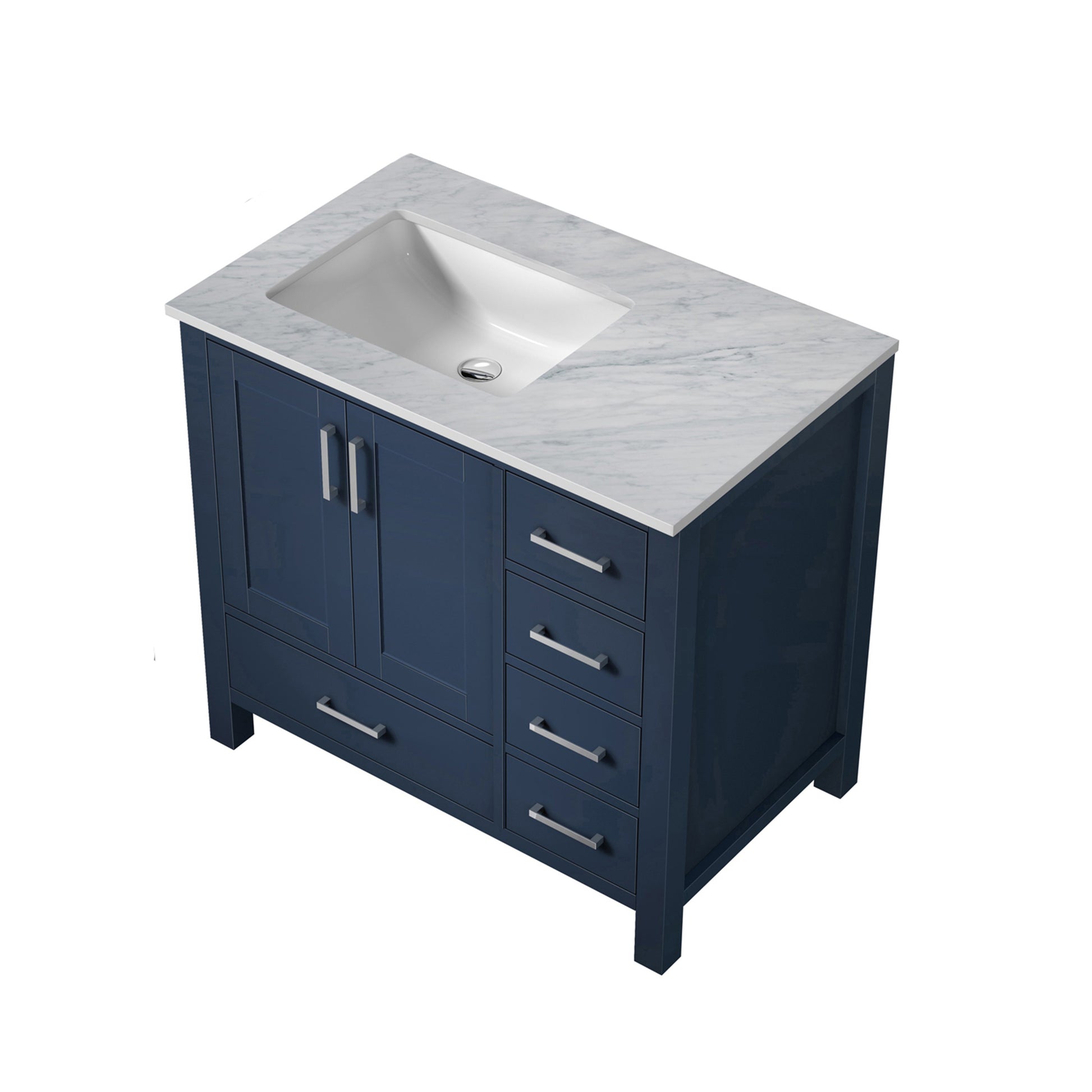 Jacques 36" Navy Blue Single Vanity, White Carrara Marble Top, White Square Sink and no Mirror - Left Version