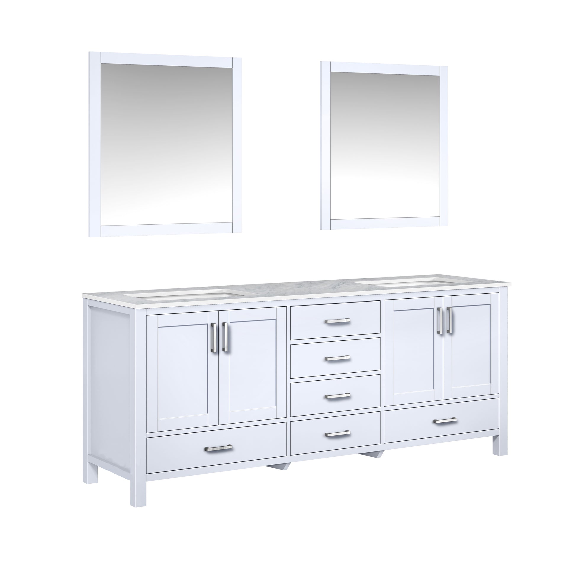 Jacques 80" White Double Vanity, White Carrara Marble Top, White Square Sinks and 30" Mirrors