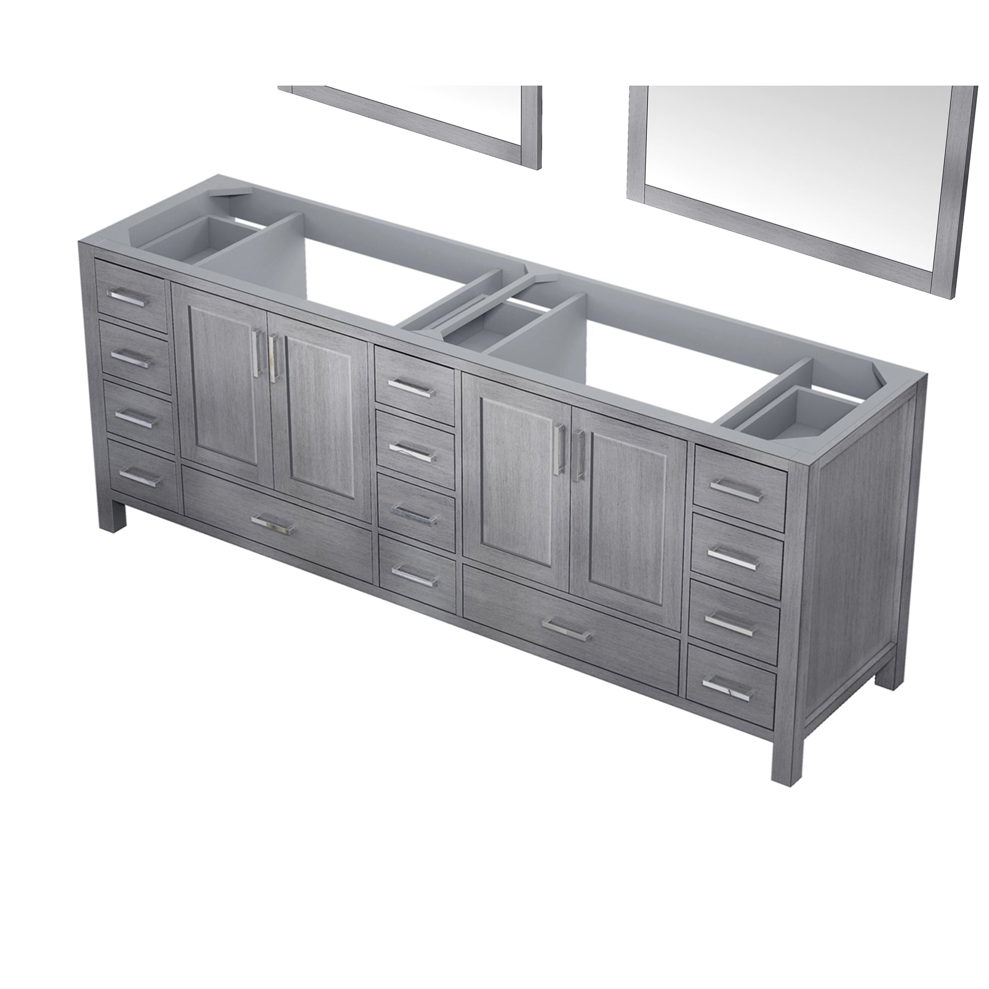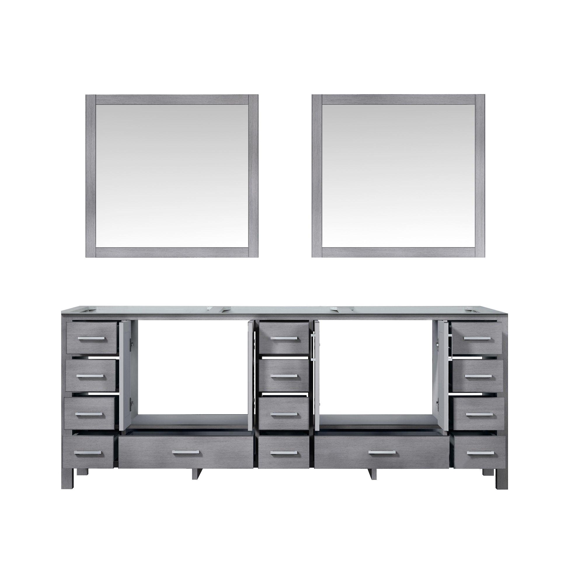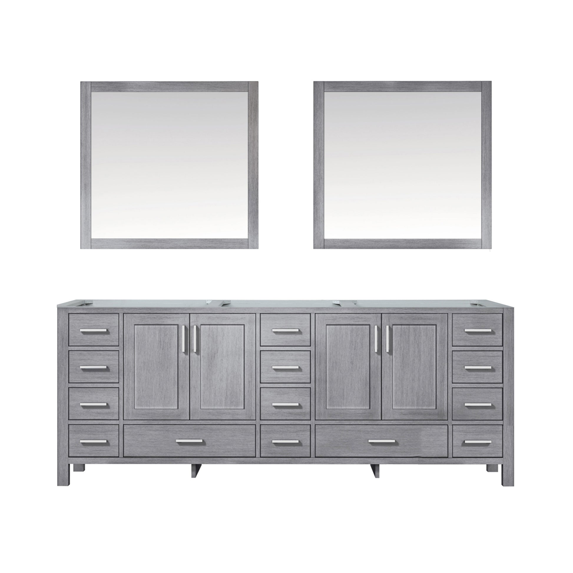The Jacques vanity in distressed grey from Lexora provides a beautiful, contemporary style to any bathroom. With sleek, clean lines and a cool, neutral finish, this vanity's beauty is only matched by its seamless functionality. The cabinet doors and drawers feature soft-close hinges and slides to increase safety and ensure you never have to hear a slamming cabinet again. With solid birch and rubber wood construction, this piece is as durable as it is stunning. The Jacques vanity comes in 4 different sizes and 3 finishes to fit into any size bathroom and blends with any style. It includes mirrors with matching wood frame, making it the one package you need to finish off your bathroom upgrade.