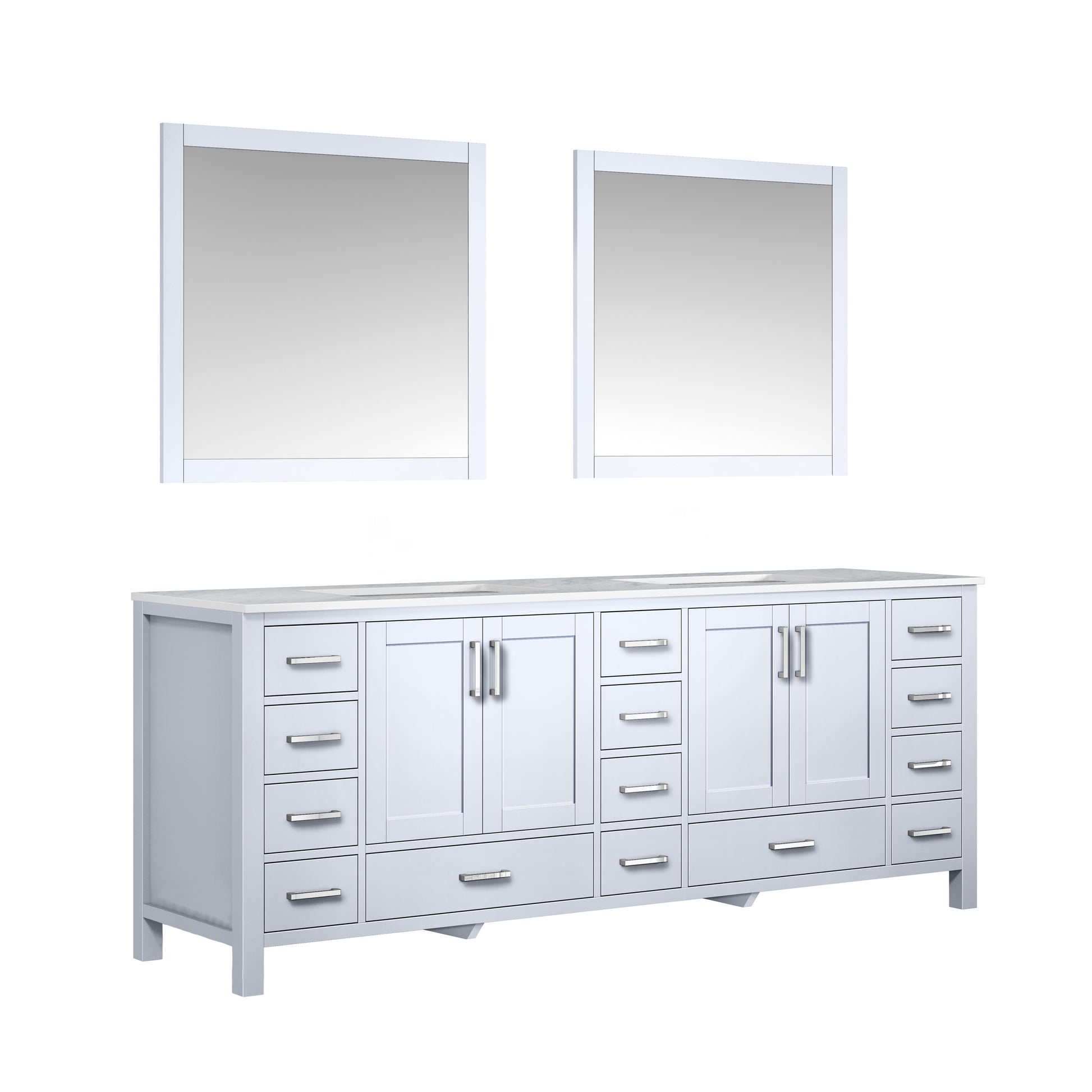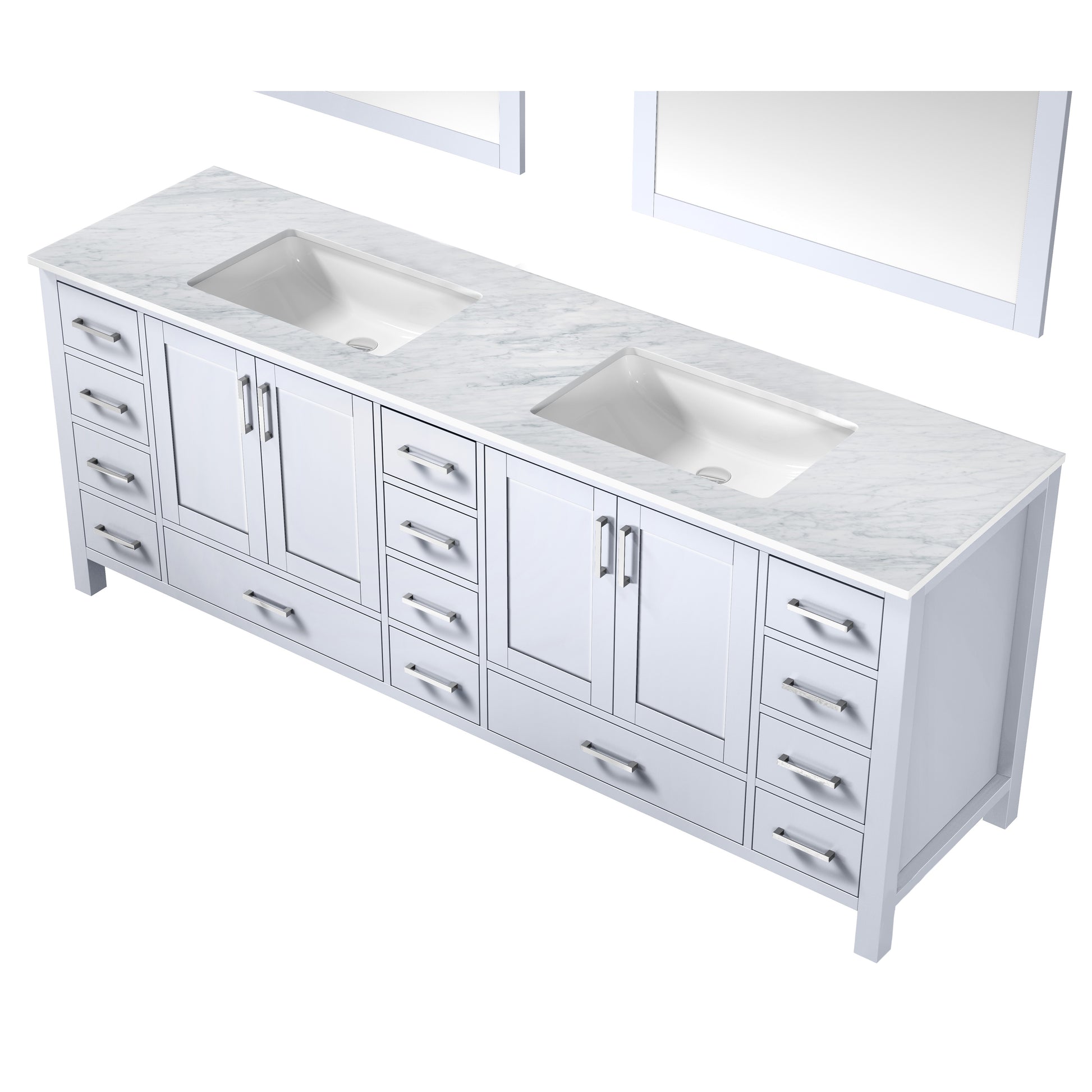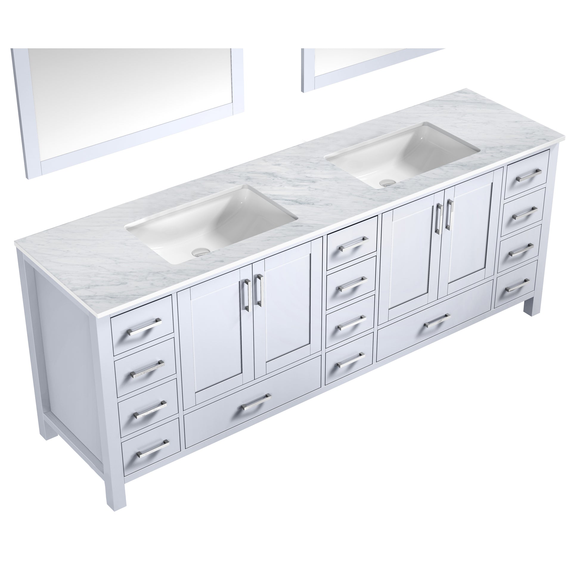 Jacques 84" White Double Vanity, White Carrara Marble Top, White Square Sinks and 34" Mirrors