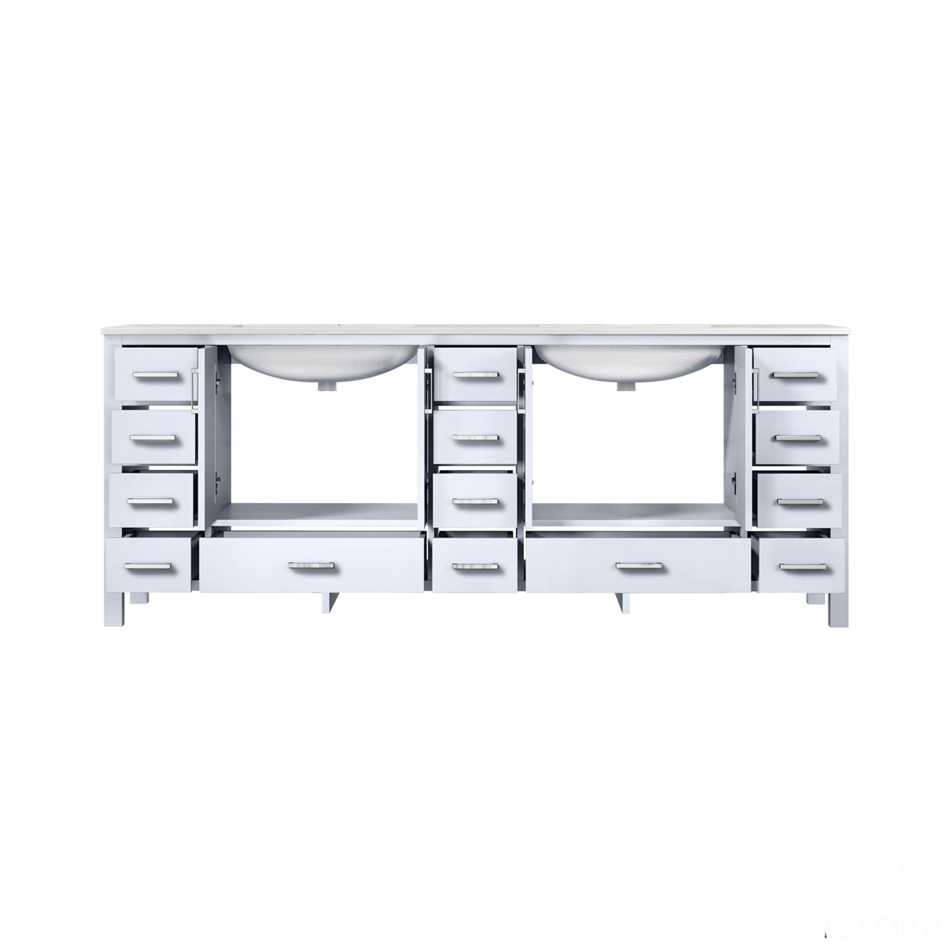 The Jacques vanity in white from Lexora provides a beautiful, contemporary style to any bathroom. With sleek, clean lines and a cool, neutral finish, this vanity's beauty is only matched by its seamless functionality. The cabinet doors and drawers feature soft-close hinges and slides to increase safety and ensure you never have to hear a slamming cabinet again. With solid birch and rubber wood construction, this piece is as durable as it is stunning. The Jacques vanity comes in different sizes and finishes to fit into any size bathroom and blends with any style.It also includes a matching countertop and ceramic undermount sinks, making it the one package you need to finish off your bathroom upgrade.