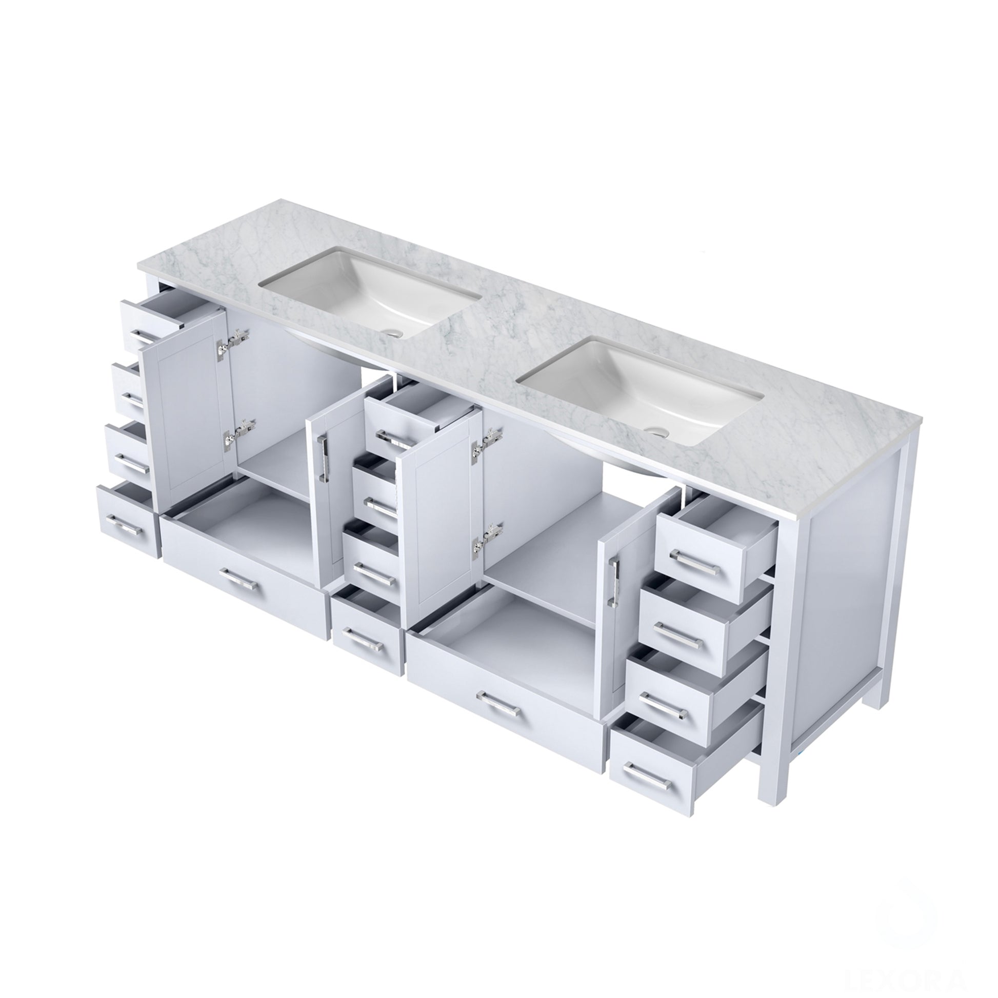 Jacques 84" White Double Vanity, White Carrara Marble Top, White Square Sinks and no Mirror