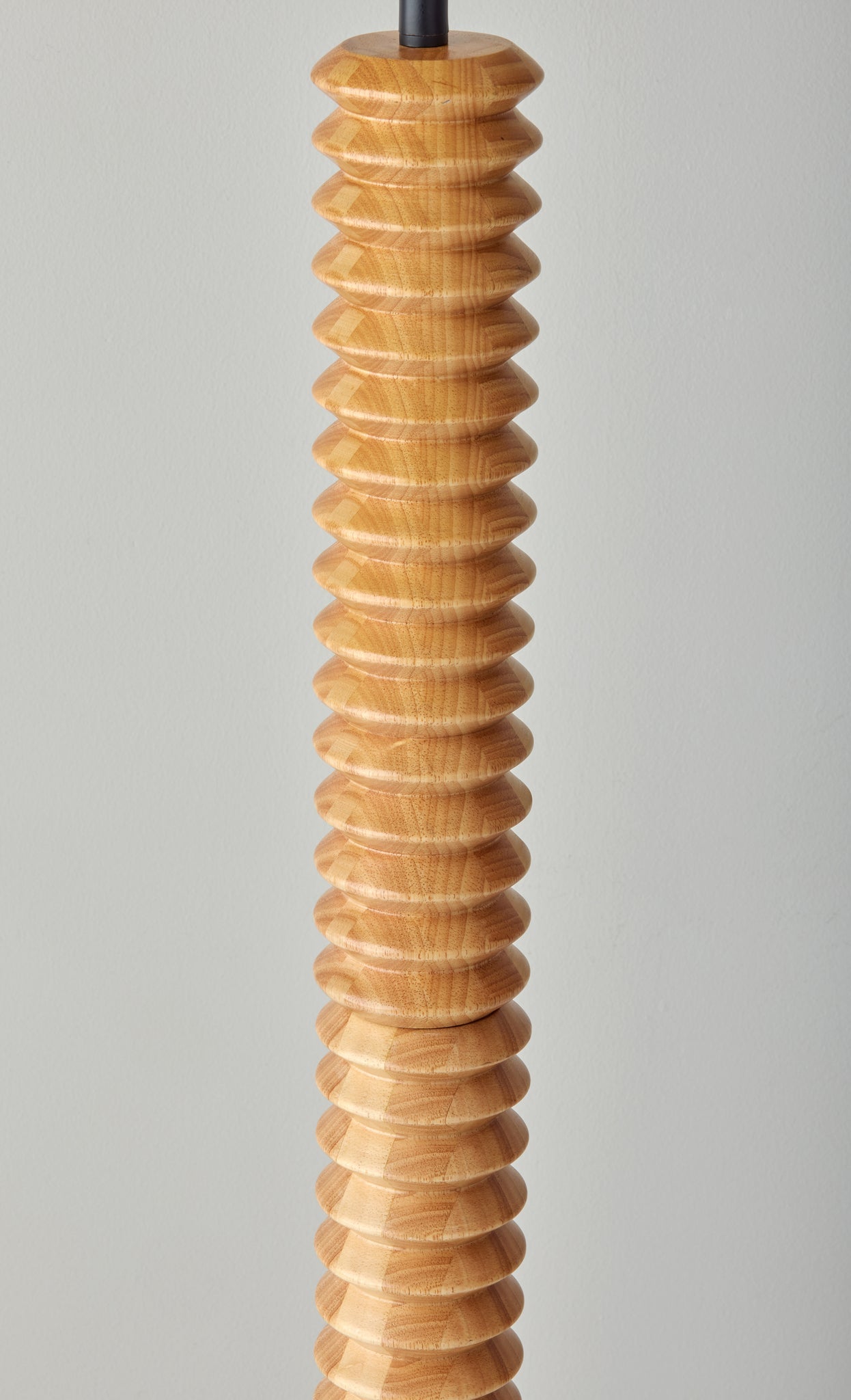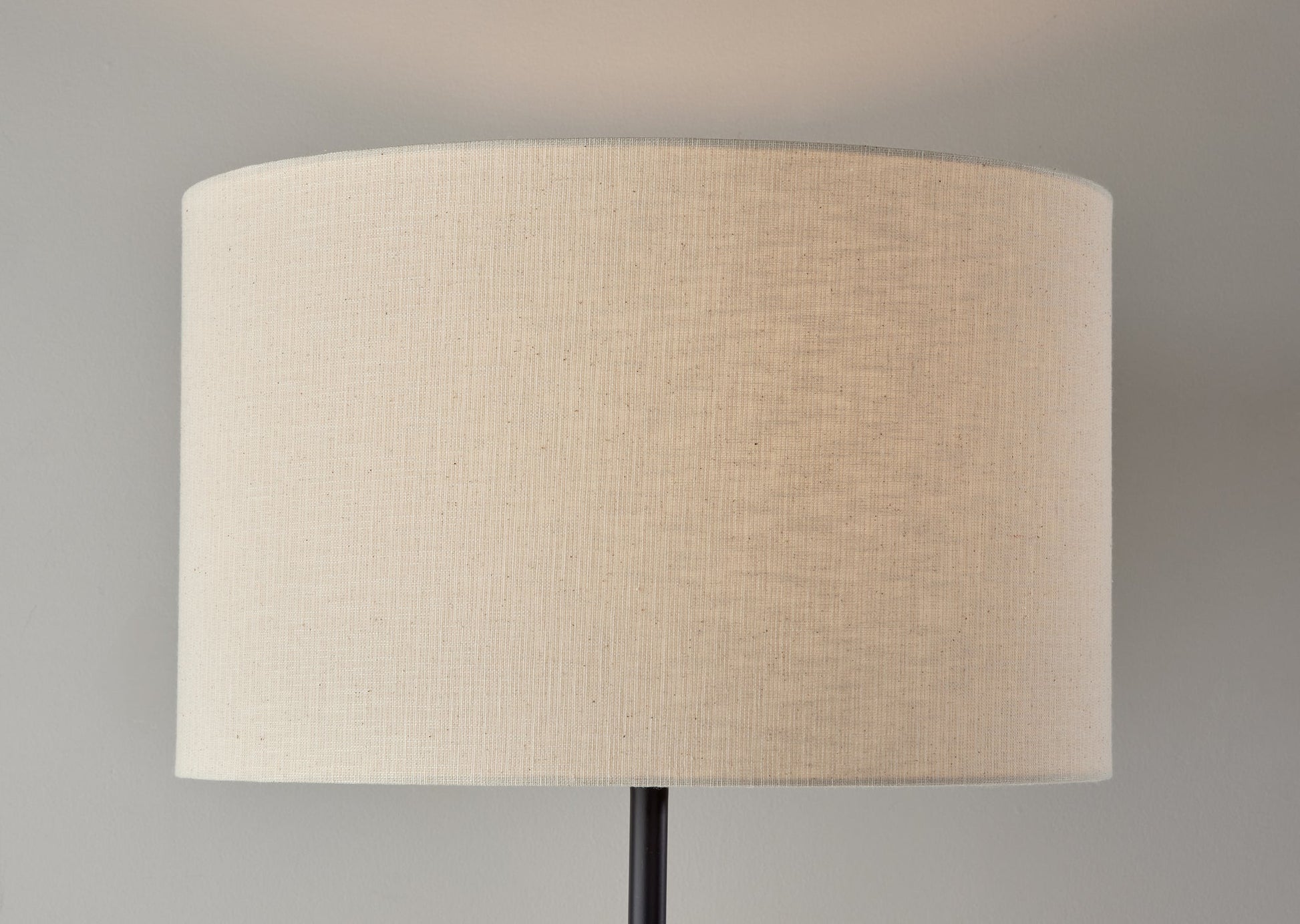 With a bold silhouette and stylish blend of materials, the Judith floor lamp is the perfect accompaniment to contemporary or transitional décor. The lamp features a black metal square base with clean lines that supports a matching black metal stem. For a striking look with contrasting colors and materials, a tall natural wood decorative piece adorns the stem. Topping the lamp is a textured cream colored drum shade that softly diffuses the light from a 150W bulb. Operated by a 3-way rotary switch, the brightness can be set to low, medium, or high to always suit your lighting needs. Complete your decorative scheme with the coordinating Judith table lamp.