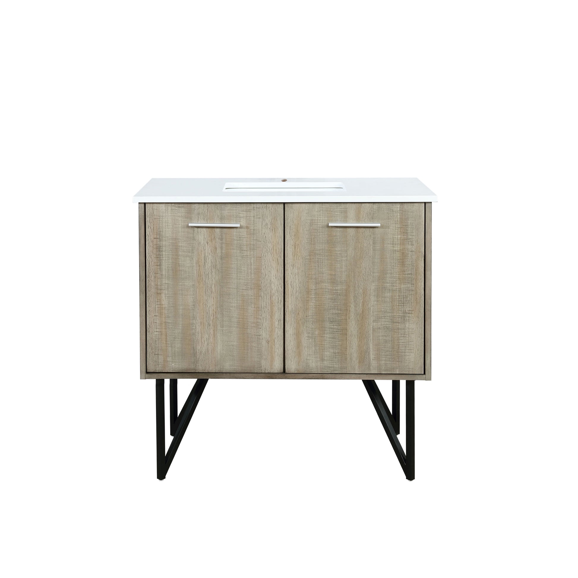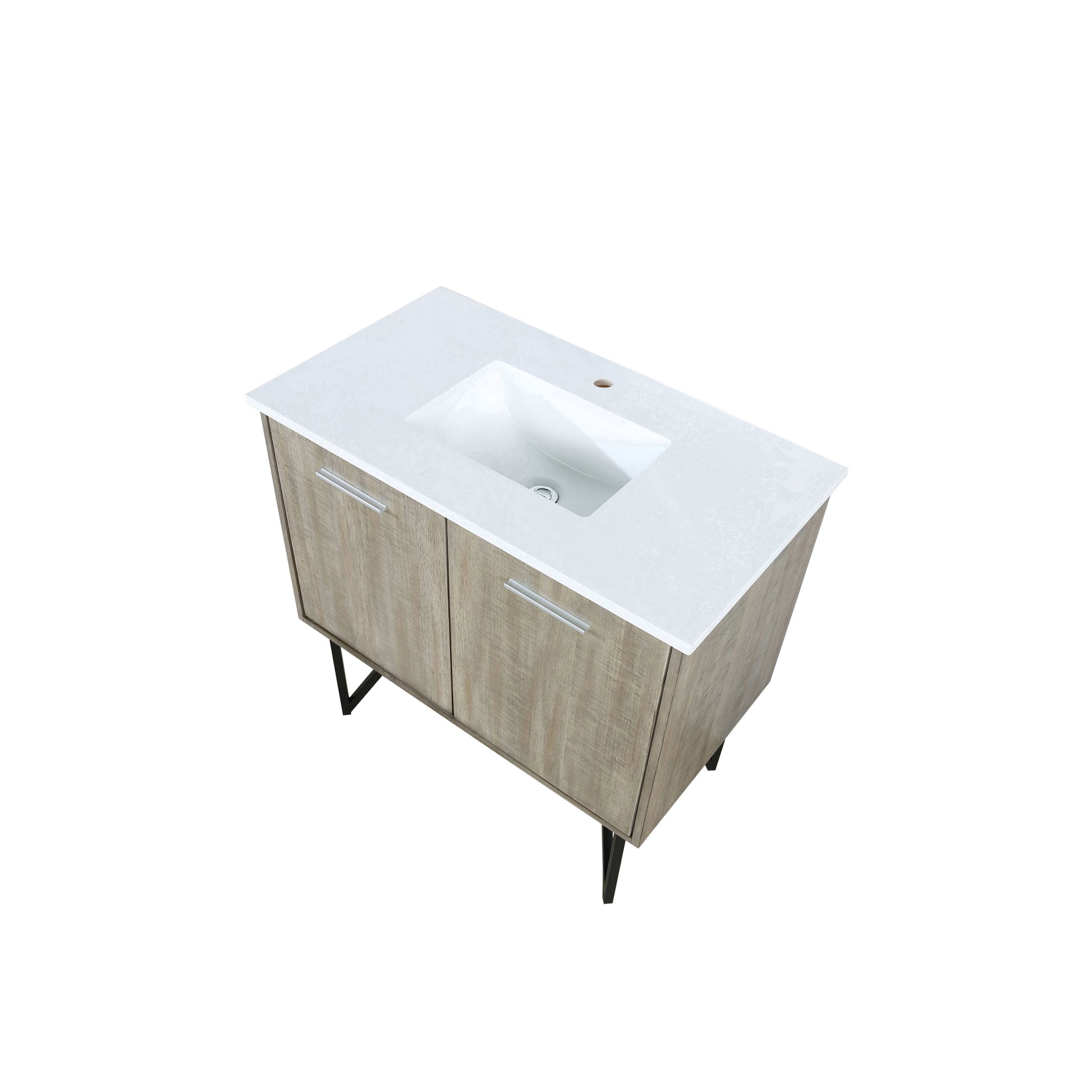 Lancy 36" Rustic Acacia Bathroom Vanity, White Quartz Top, and White Square Sink