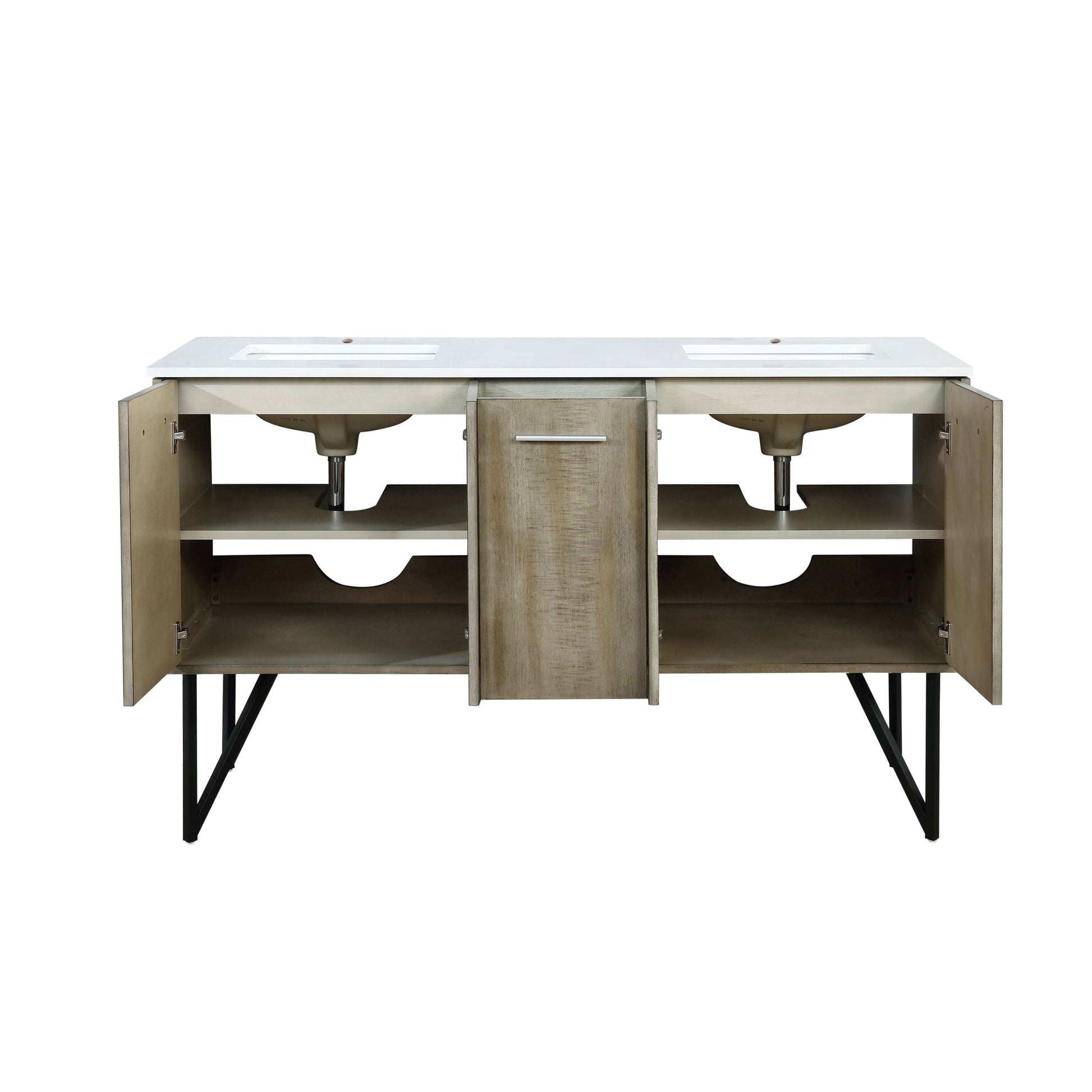 Lancy 60" Rustic Acacia Double Bathroom Vanity, White Quartz Top, and White Square Sinks