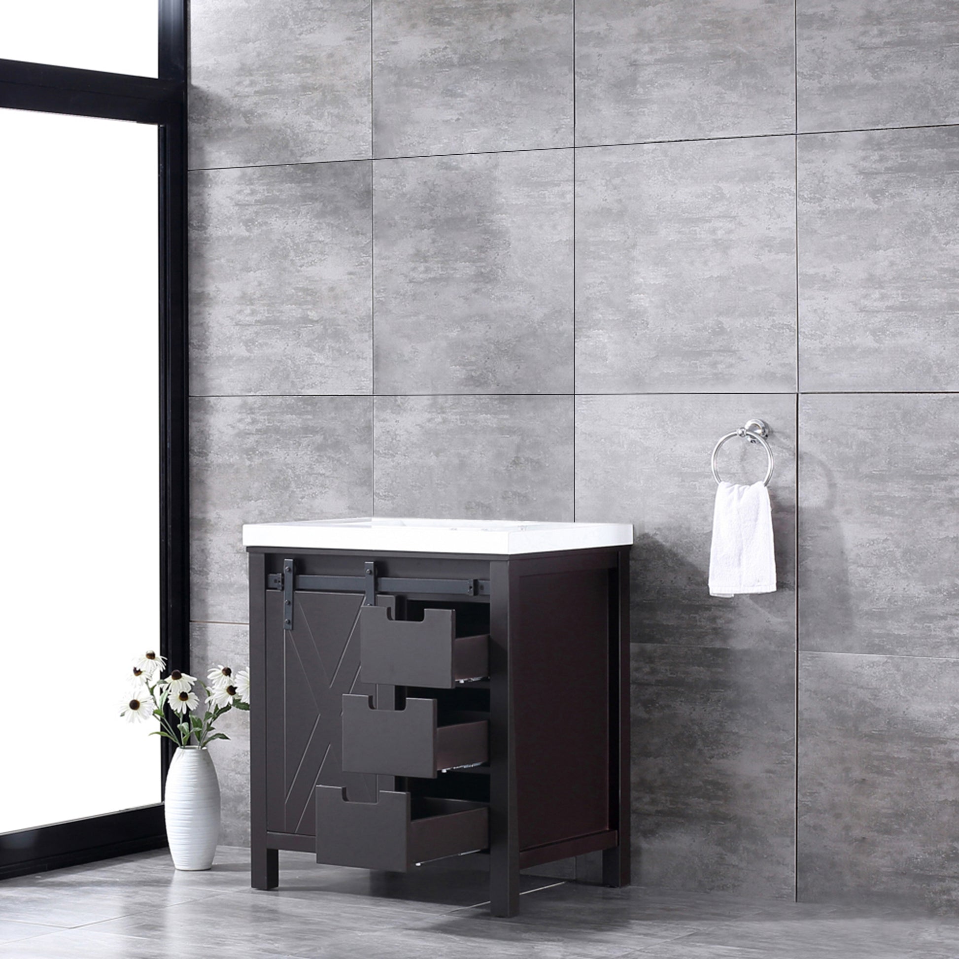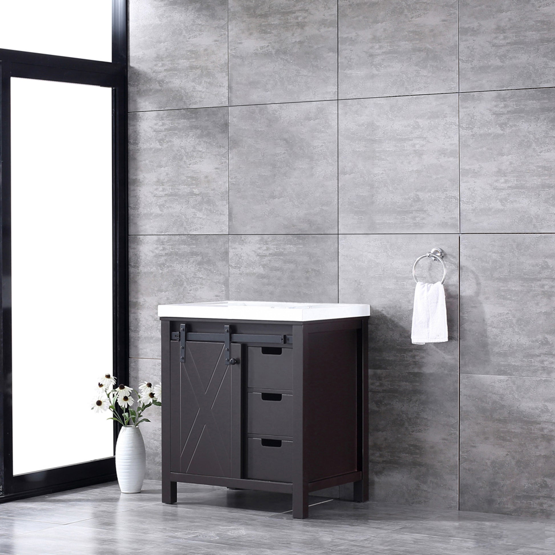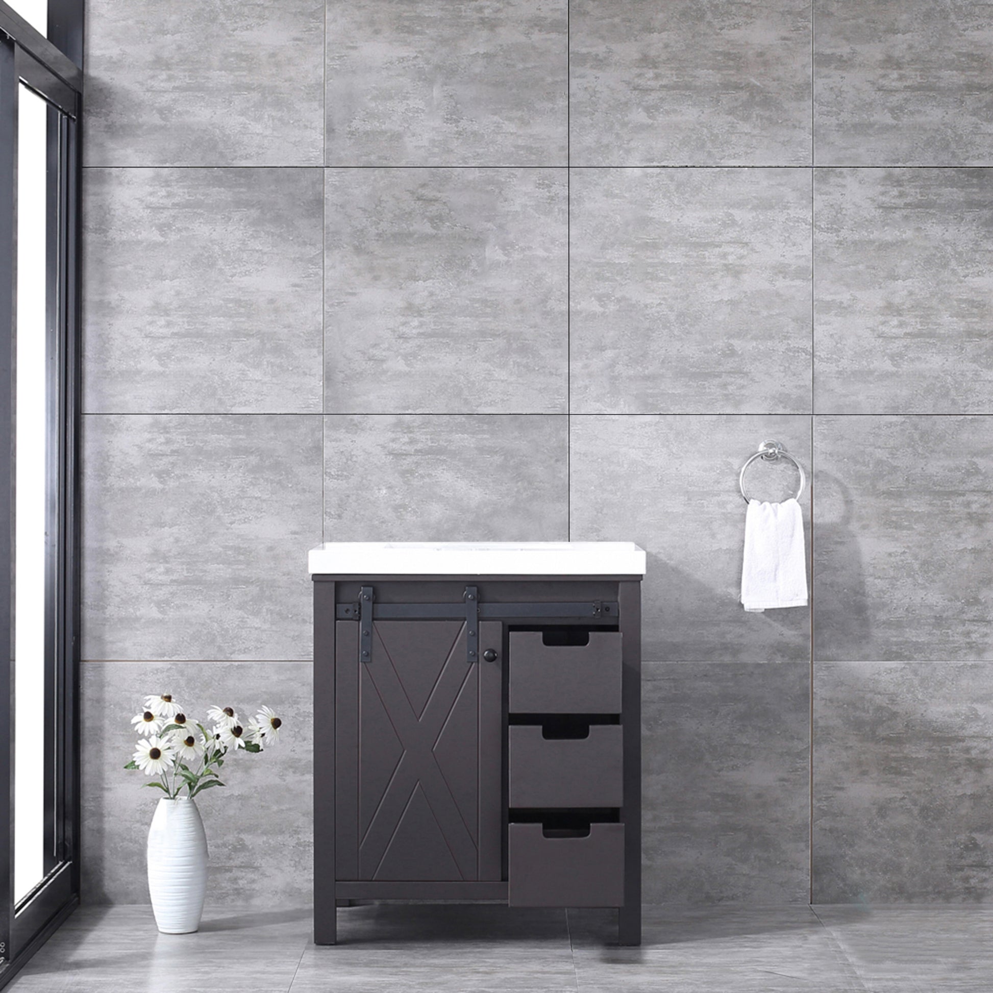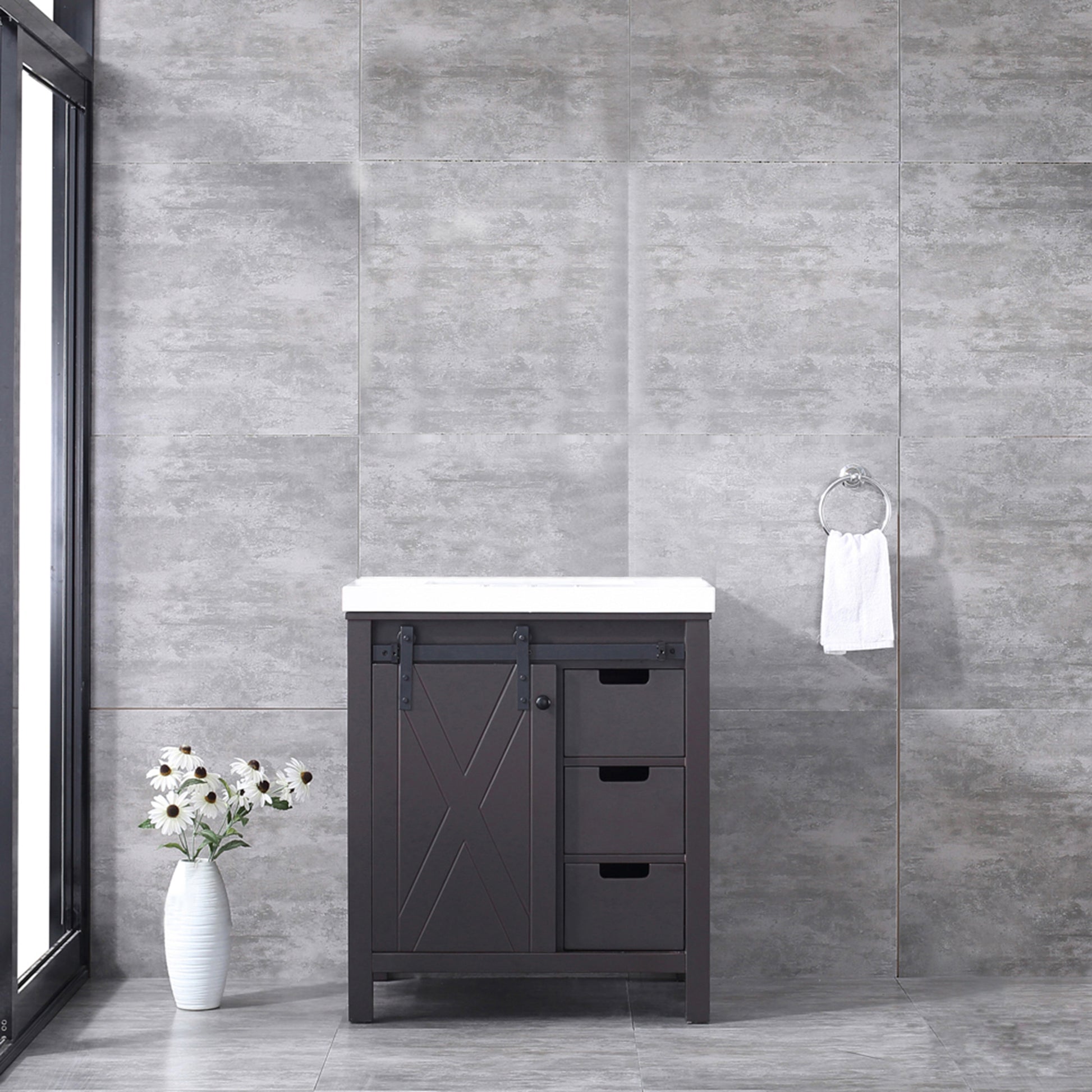 Marsyas 30" Brown Single Vanity, White Quartz Top, White Square Sink and no Mirror