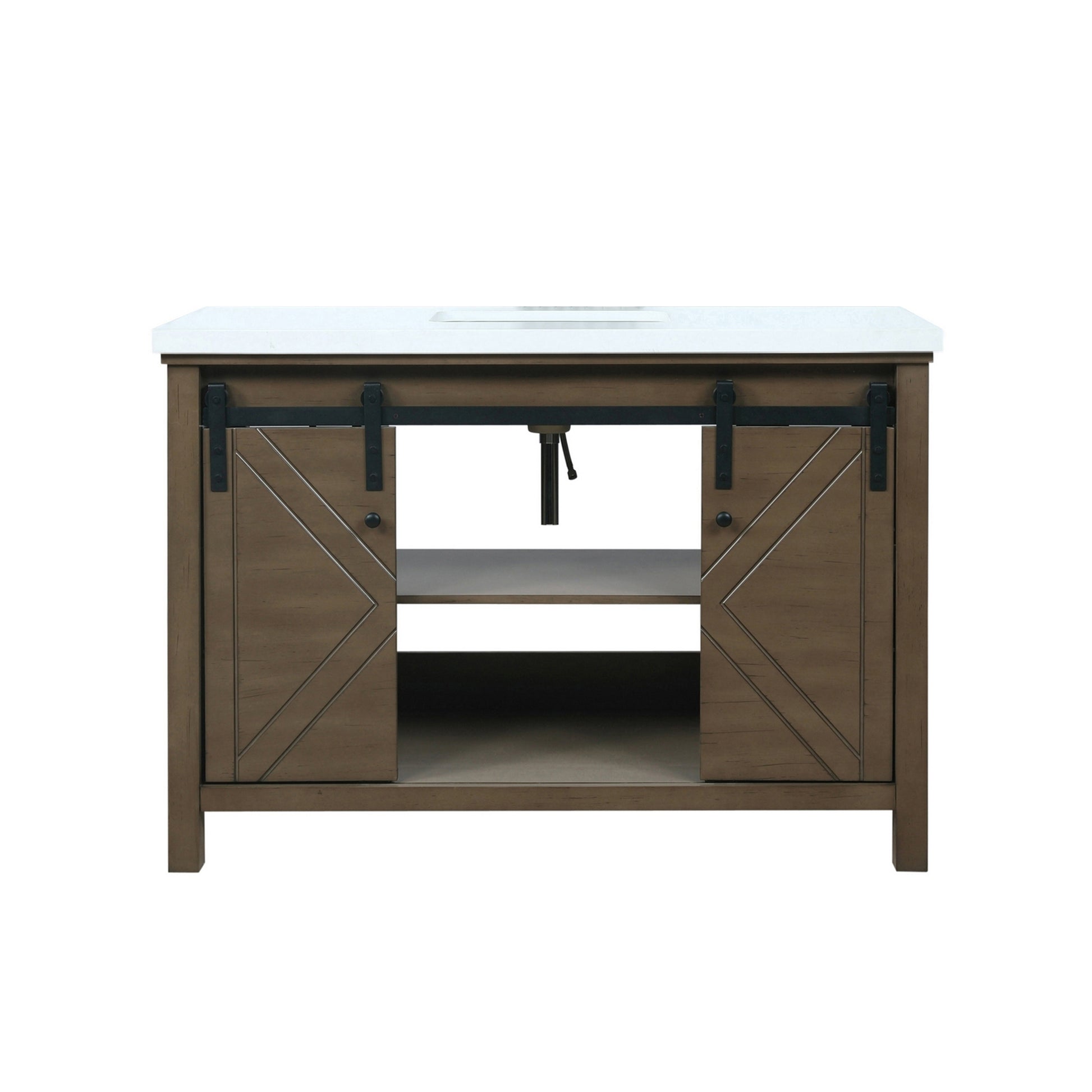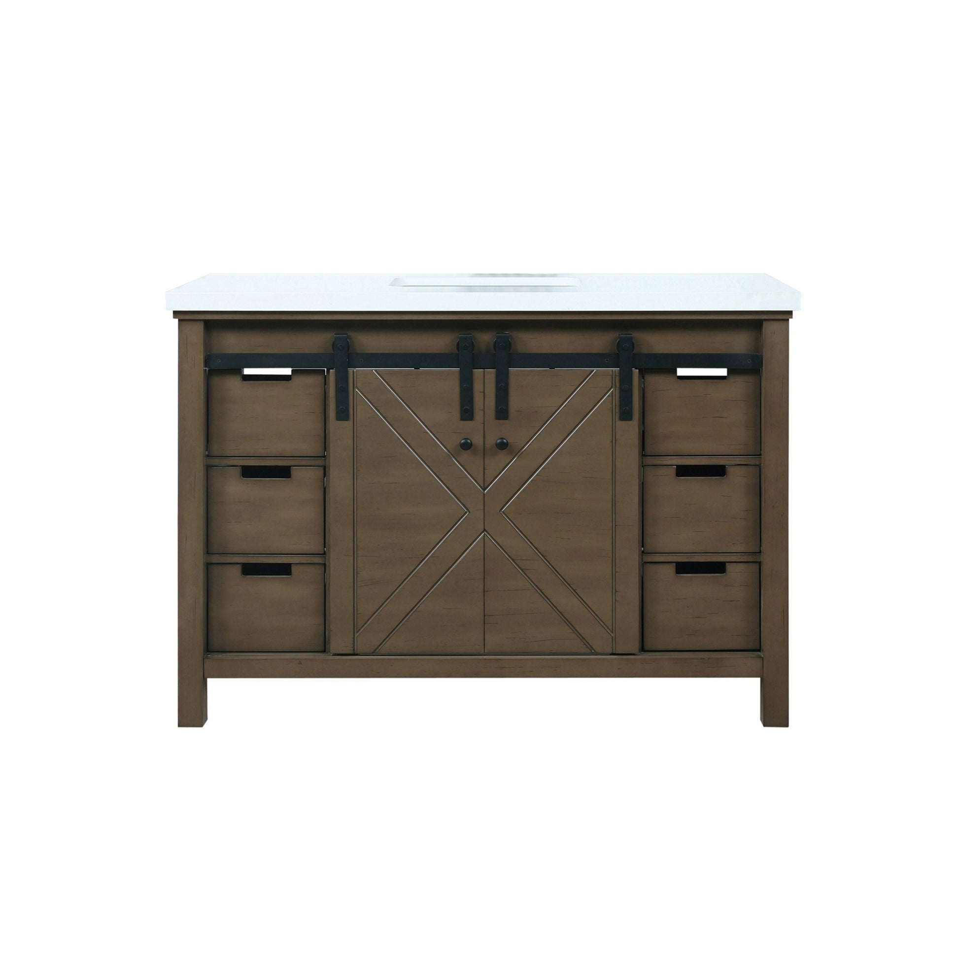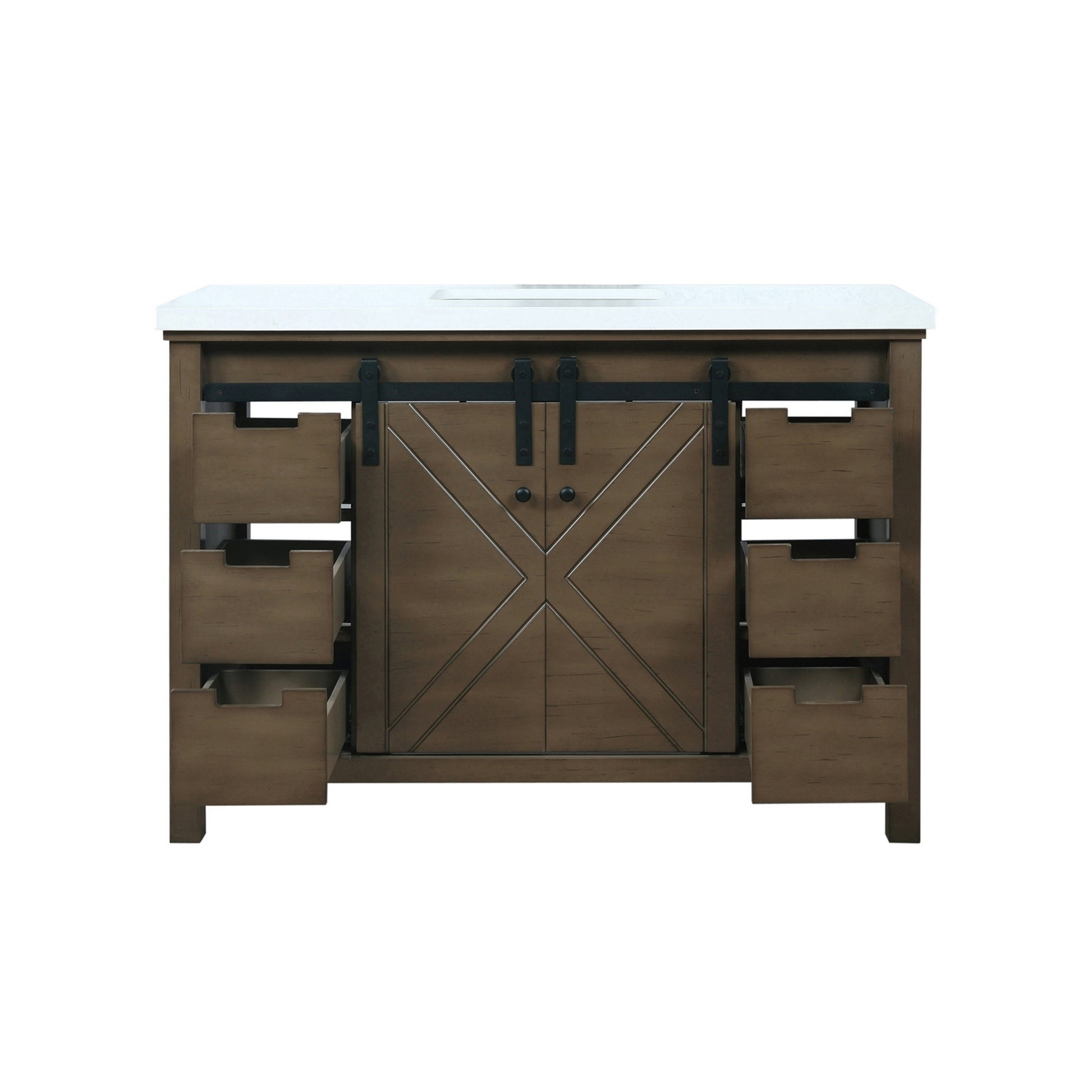 Marsyas 48" Rustic Brown Single Vanity, White Quartz Top, White Square Sink and no Mirror