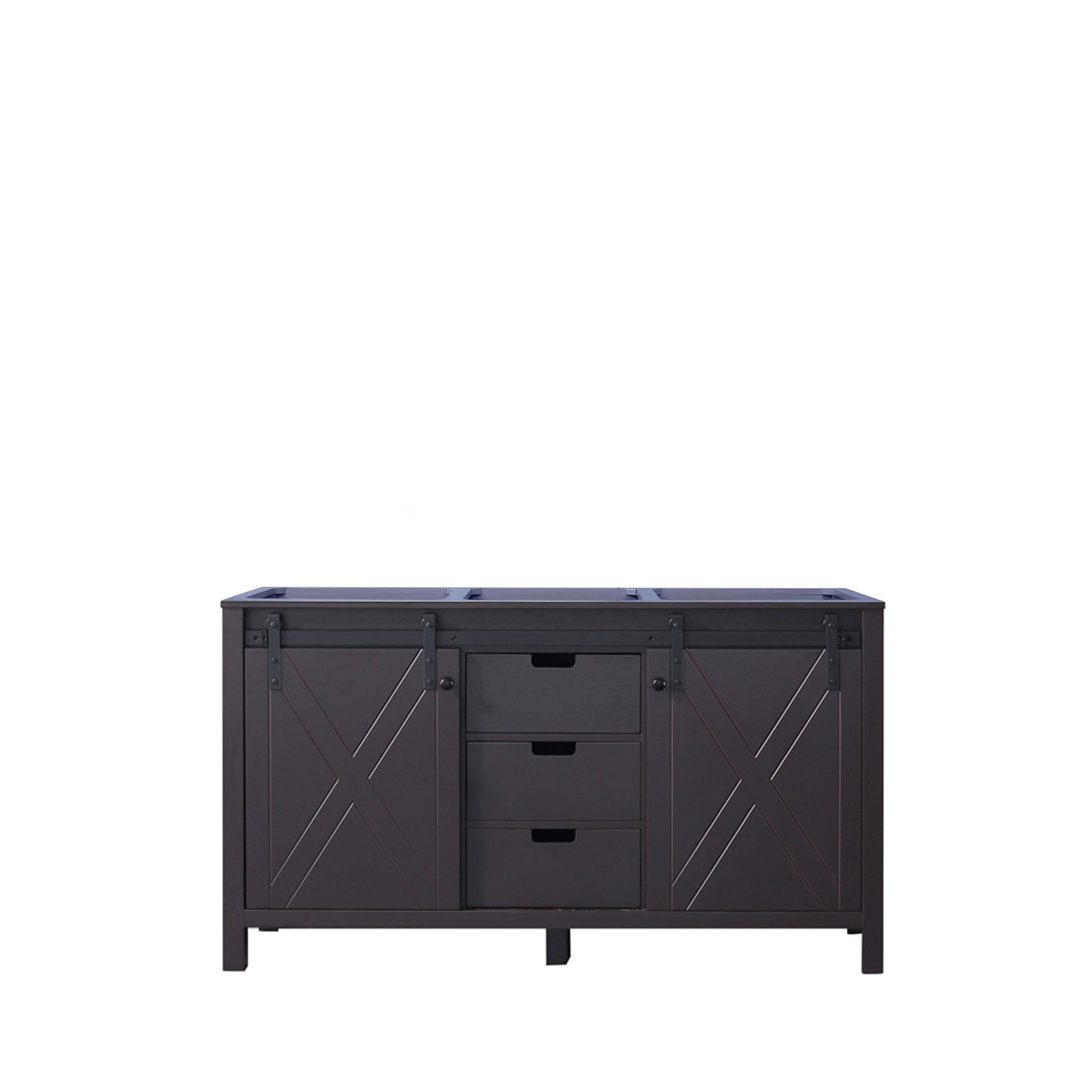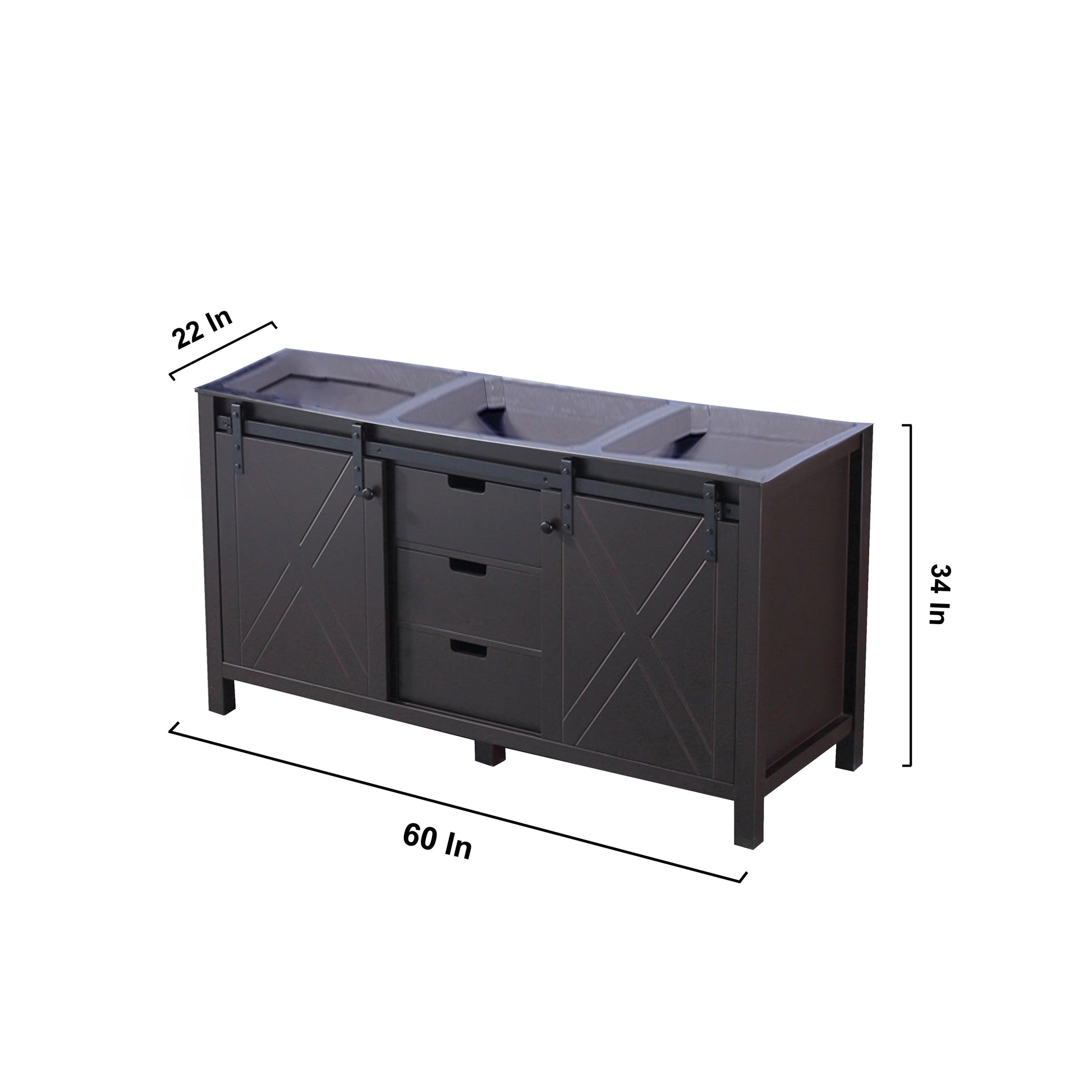 The Marsyas vanity in brown features a unique blending of modern style with rustic design elements to create a piece that makes a beautiful addition to any bathroom. This collection has a cool-toned finish, smooth with modern lines, but the sliding, barn-style cabinet doors give this vanity a truly unique touch. Constructed of solid birch and rubber wood, with superior moisture resistance, this piece's style is only matched by its dependability. The Marsyas vanity is the perfect set for finishing off your bathroom remodel.